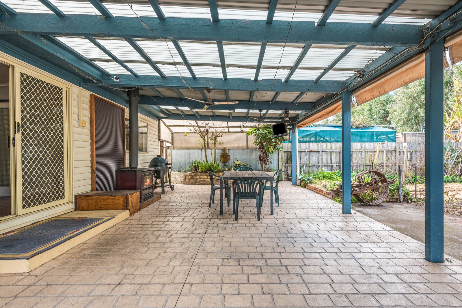 Outside, the huge undercover alfresco features outdoor blinds and a woodfire heater, offering a private and sheltered area for relaxing or entertaining all year round. The large block features veggie gardens and a chook pen for fresh produce and eggs. The long driveway and carport allow for ample off-street parking, with extensive workshop and shedding facilities, perfect for the handy person of the home.