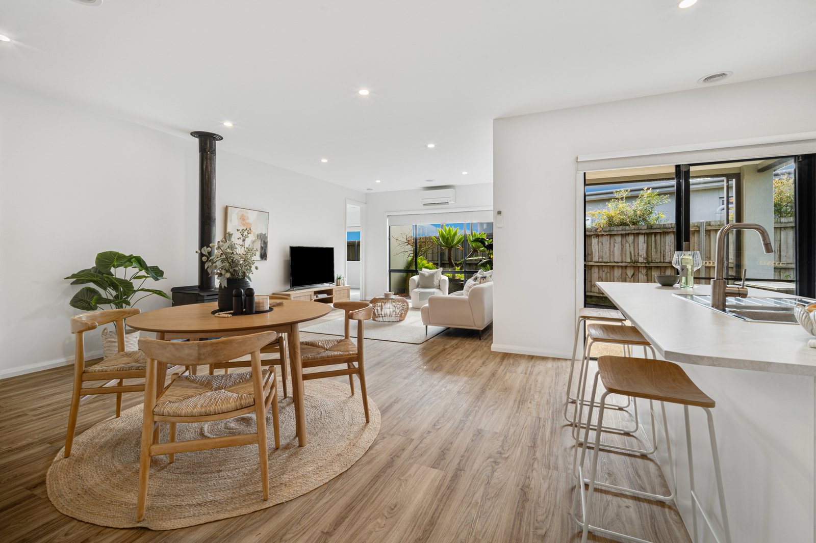 The open-plan layout is ideal for modern living, featuring a welcoming living and dining area complemented by a split system,...
