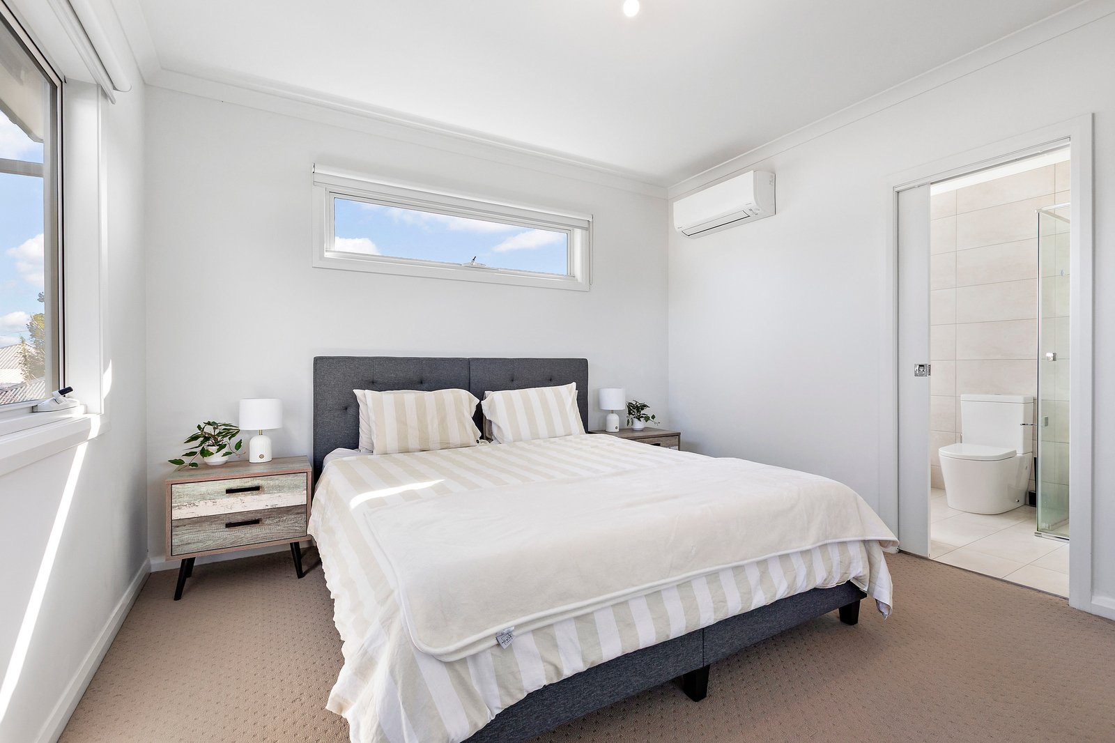 With its contemporary interior and generous proportions, this stylish 2-bedroom, 1.5 bathroom freestanding residence is low-maintenance and the perfect step into a laidback beachside lifestyle. Situated within a leisurely stroll of the pristine white sand and beachside cafes, the train station, village and schools, you will love calling this ultra-convenient location home. Downstairs open plan living immerses you in northern sunshine, seamlessly flowing to a large outdoor paved alfresco and garden – ideal for summer barbeques and relaxation. Modern luxury awaits in the well-equipped kitchen with its suite of SMEG appliances and sleek stone waterfall-edge benchtops, where the long breakfast bar offers fabulous space for casual dining and entertaining. Privately positioned upstairs, both bedrooms are peaceful retreats, enhanced by mirrored robes, individual split systems and a dual-access bathroom. The downstairs powder room offers extra comfort, along with split system heating/cooling, a proper laundry room, under-stair storage and a single remote garage with internal entry. Offering outstanding convenience, this turnkey haven is just a short walk to Chelsea Station, Chelsea Primary School, St Joseph’s Primary School, Victory Park, Chelsea Village and stunning beaches.