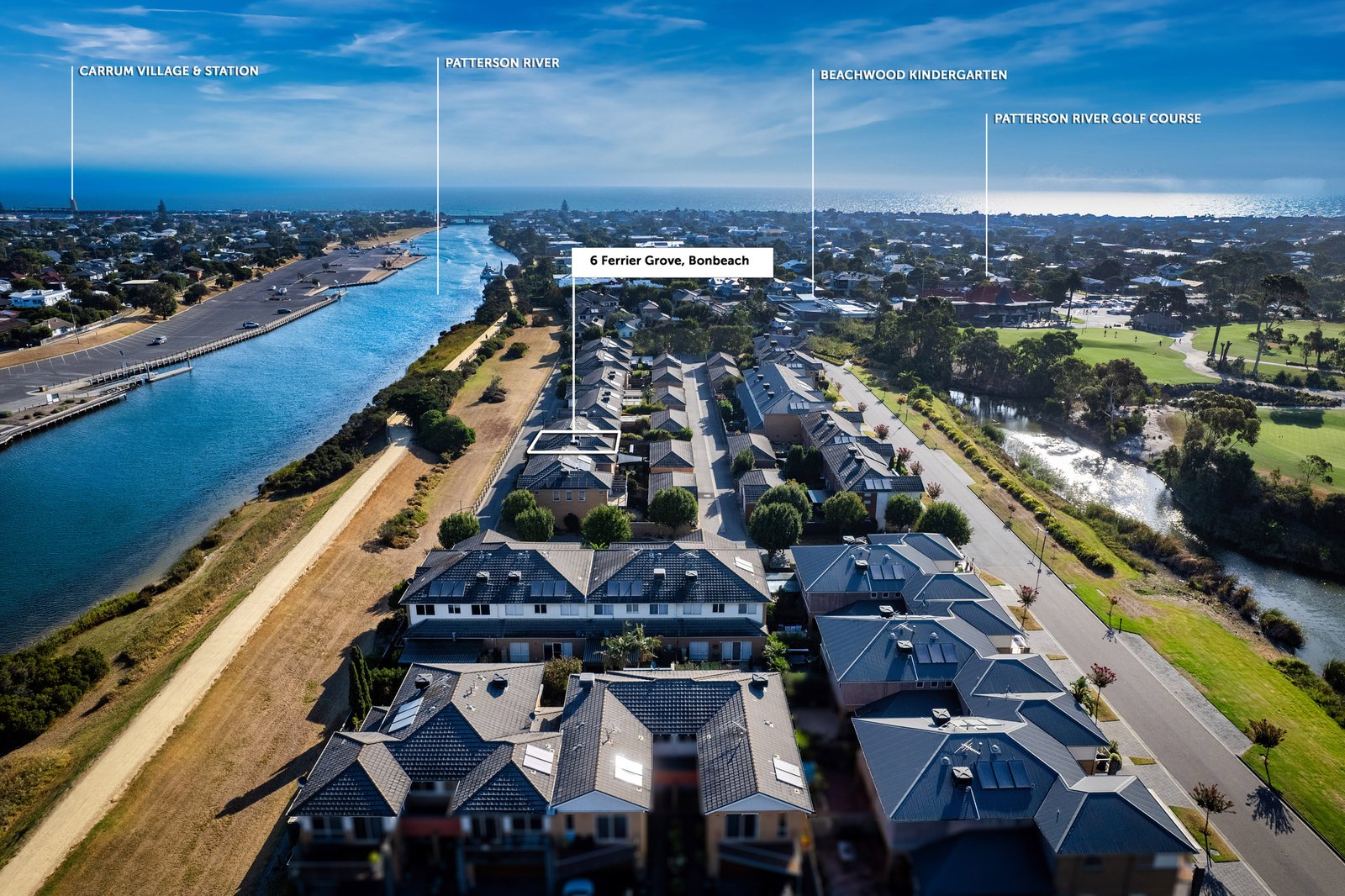 Exceptional space and breathtaking water views unite in this riverfront sanctuary townhouse, offering beautifully refreshed living tucked within a tranquil pocket. Positioned on the banks of the Patterson River, you’ll not only love the quiet appeal of this low-traffic address, but the sweeping uninterrupted vistas across the water and golden sunsets. Plush new carpet flows throughout, along with sleek new timber-style flooring, with a wide staircase leading you to expansive open-plan living and dining infused with natural light through large windows. Here, the upstairs balcony is the perfect spot to entertain guests while watching the boats sail past and kayaks glide by. The modern kitchen will impress with its suite of as-new SMEG appliances, positioned to capture the serene outlooks. Cleverly zoned for peace and privacy, three spacious bedrooms are positioned at ground-level, all with built-in robes, the master bedroom with a double vanity ensuite. The immaculate family bathroom features a separate shower and bath, while an additional guest powder room resides upstairs. Further highlights include ducted heating, evaporative cooling, a large alfresco courtyard and a remote double garage with laneway access. As for the prime position, if you enjoy a round of golf, the country club is just steps around the corner, along with Carrum Village, the station and one of the best beaches along the bay within walking distance. Conveniently close are Bonbeach ELC and Bonbeach Primary School, the Wannarkladdin Wetlands and the Longbeach Trail.