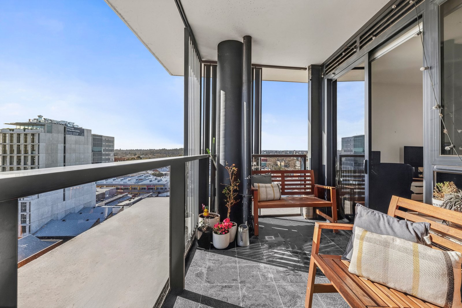 -Private balcony with sweeping district views