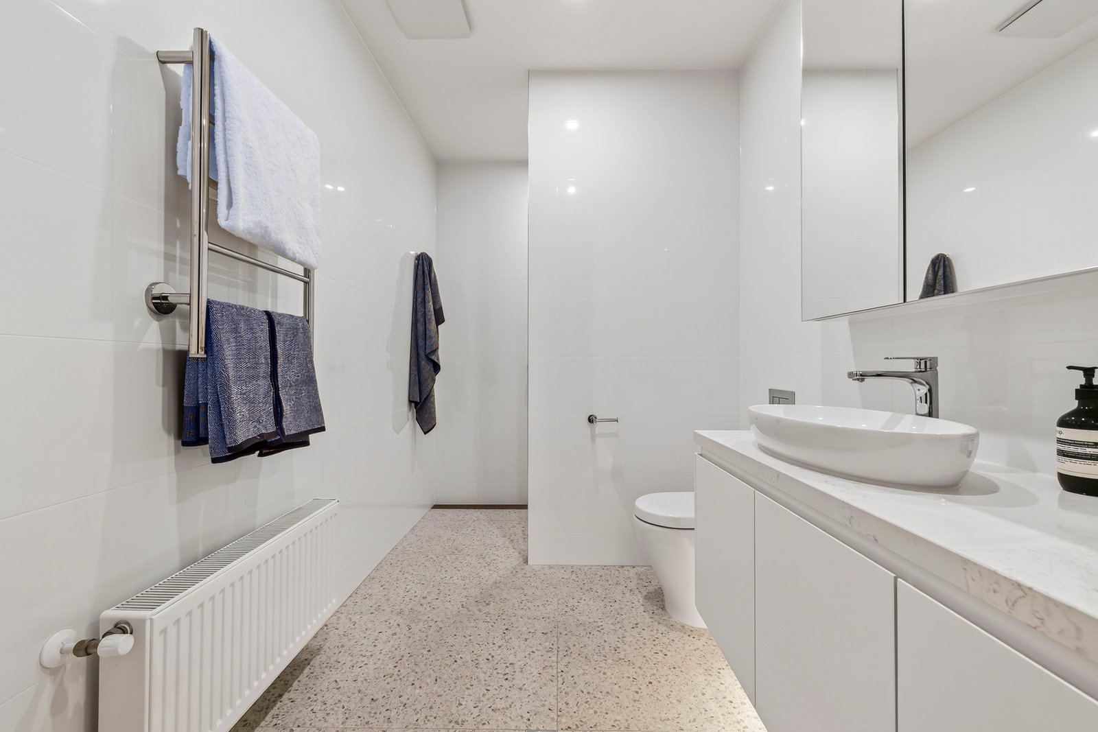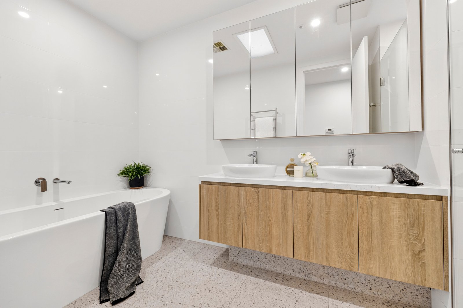 Also boasts a master suite pampered by a fitted walk-in robe and luxurious terrazzo bathroom with full height tiles, a walk in rainfall shower and handy auto lighting. As well as three further bedrooms and a matching central bathroom with tub separated by a generous rumpus / fitted office. Complimented by a ground floor bedroom option with its own matching bathroom