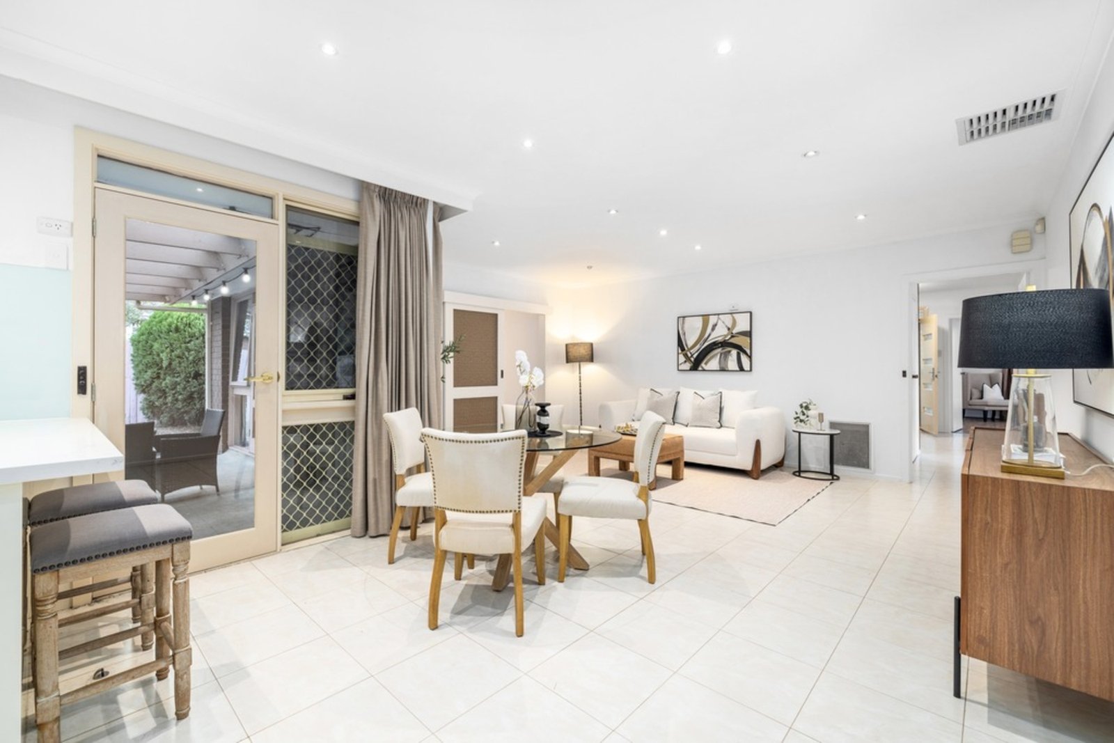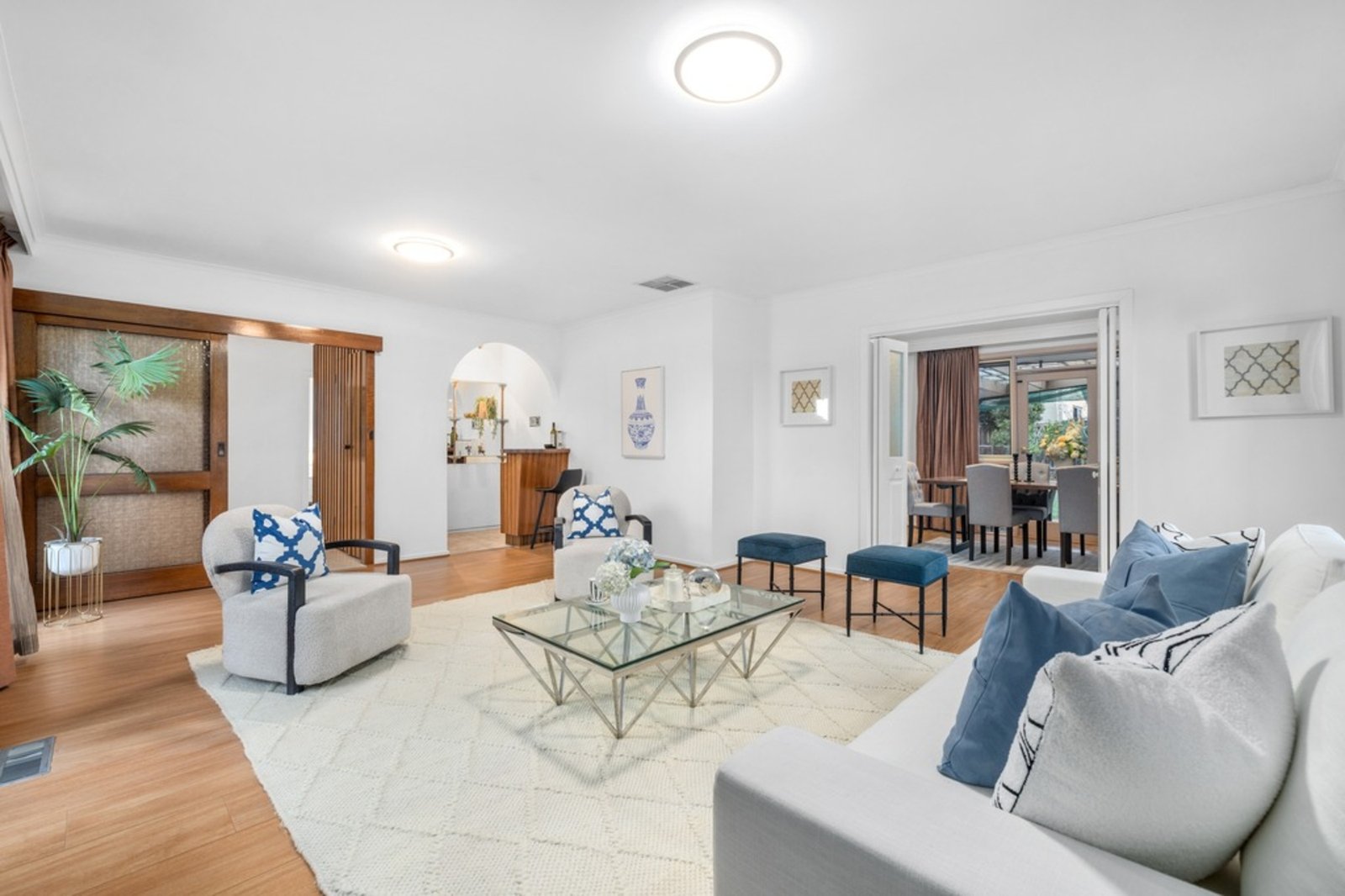 Glowing with northerly sunshine, the generous formal lounge room is perfect for socialising with friends thanks to its entertainer’s bar and bifold door access through to a defined dining room.