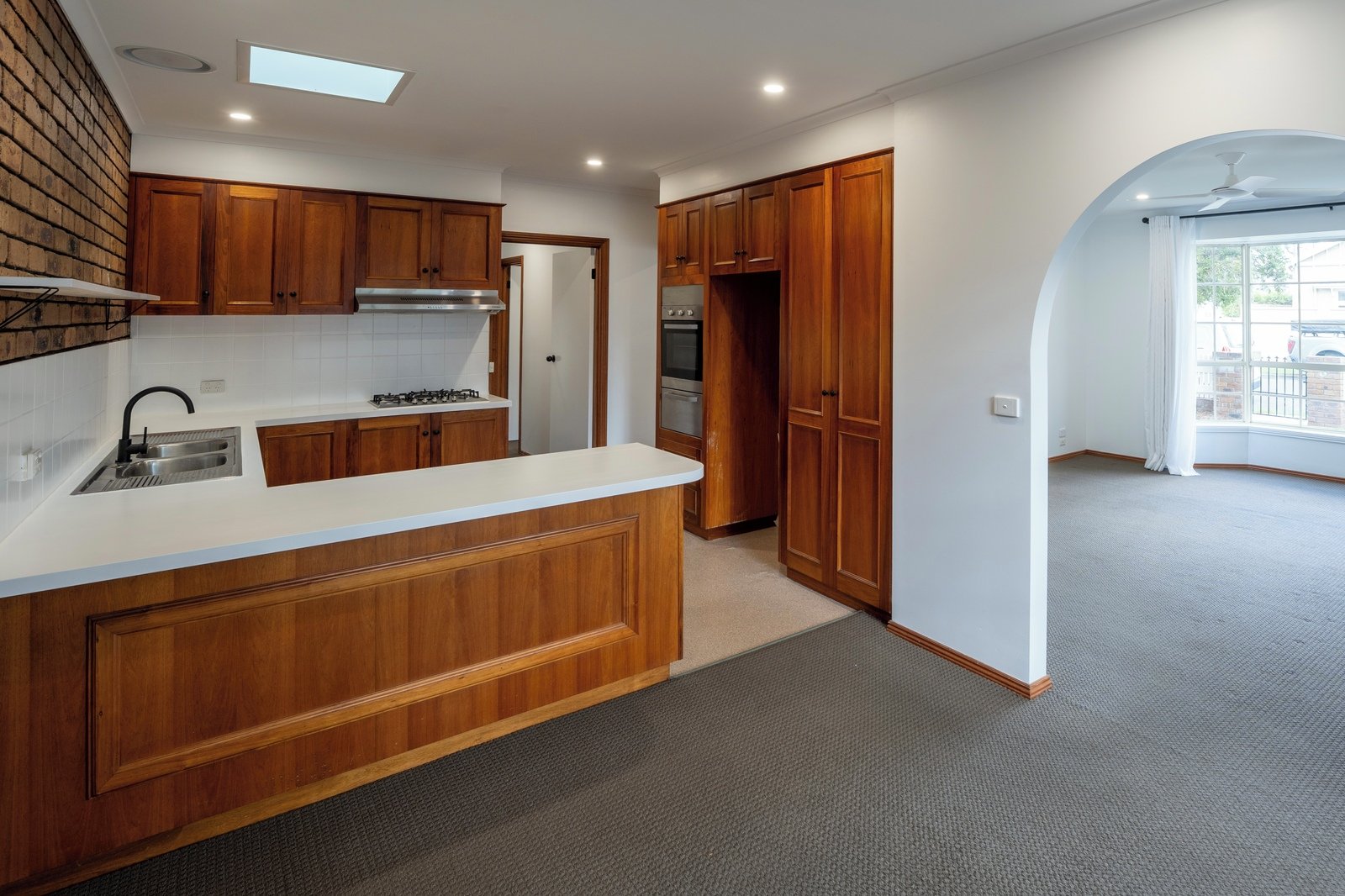 - Well-appointed timber kitchen with 600mm wall oven, gas cooktop, ample storage & bench space