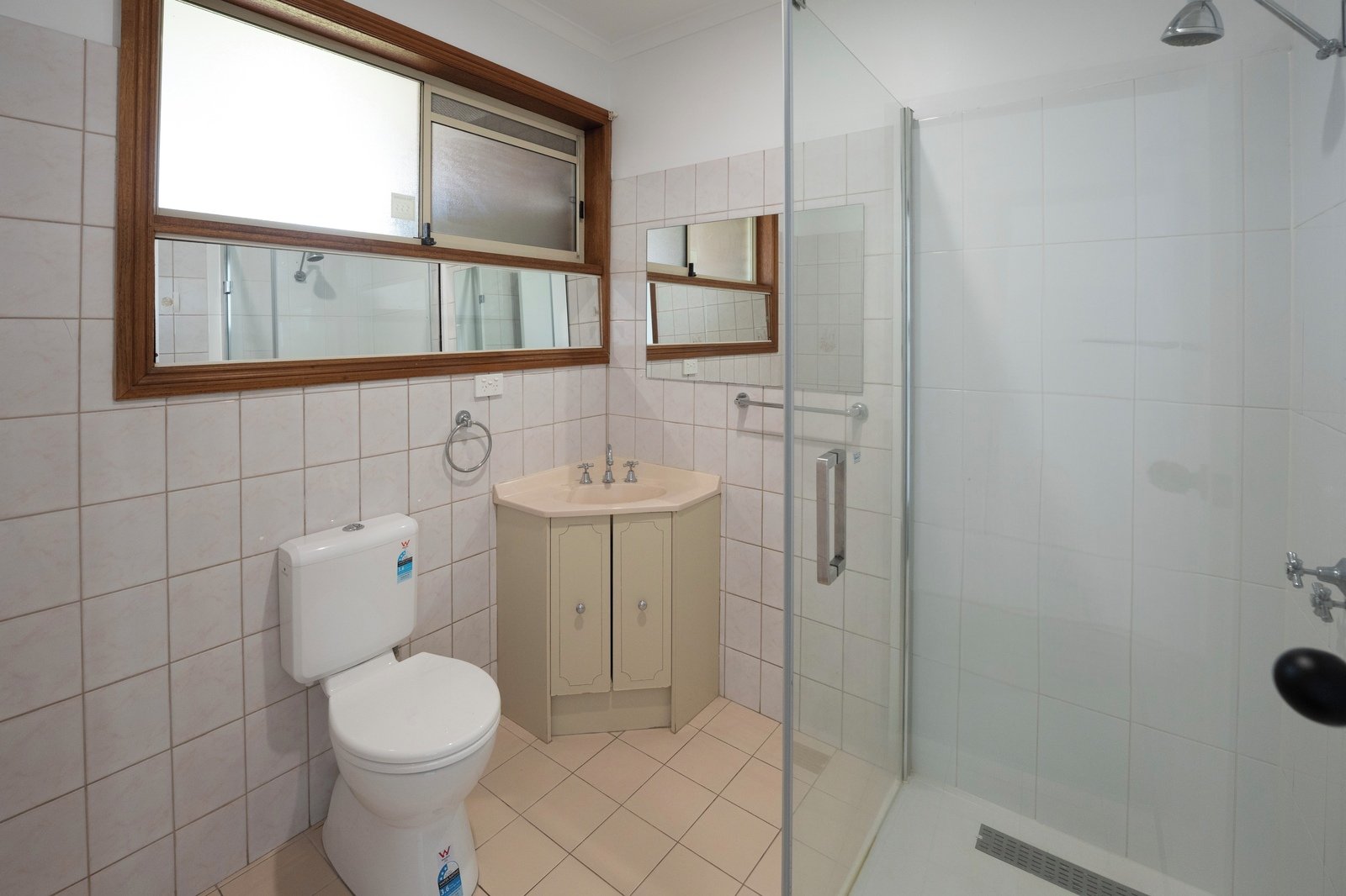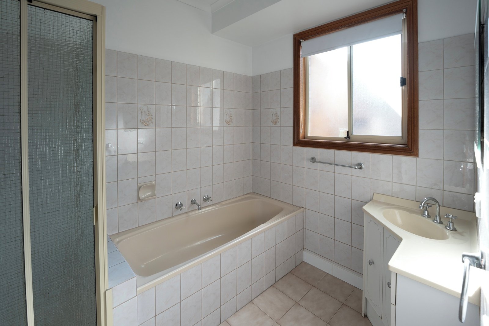 - Bright central bathroom with bath, shower, vanity and separate toilet