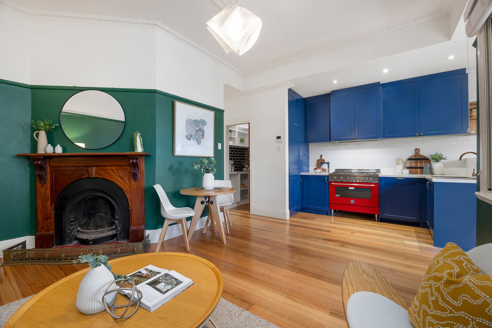 Steeped in character and brimming with period charm, this residence blends graceful heritage details with tasteful modern updates. From your own street entrance, step into the elegant entry, opening onto the open plan living/dining room, framed by rich timber fireplaces, ornate cornices, and vibrant feature walls.
