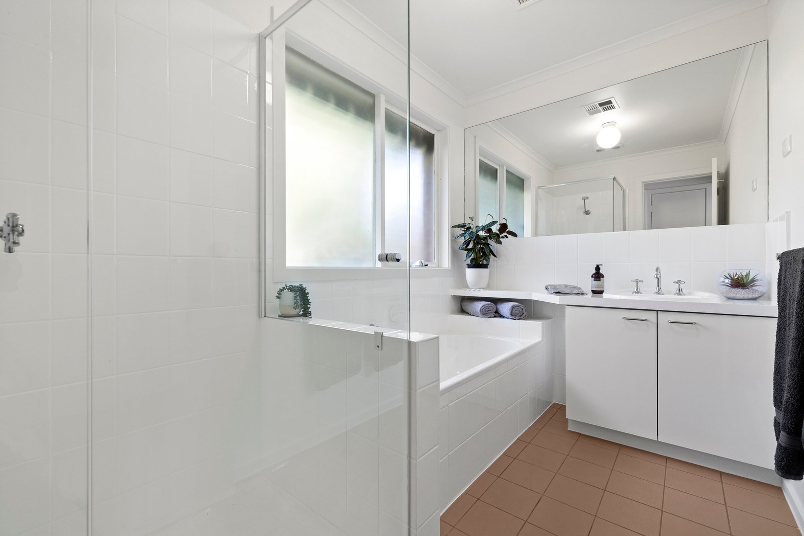 Bookending the living areas, the bedrooms are separately zoned to give the generous ensuite master (WIR) peace and privacy from two further bedrooms with robes that share a gleaming full bathroom with separate WC.