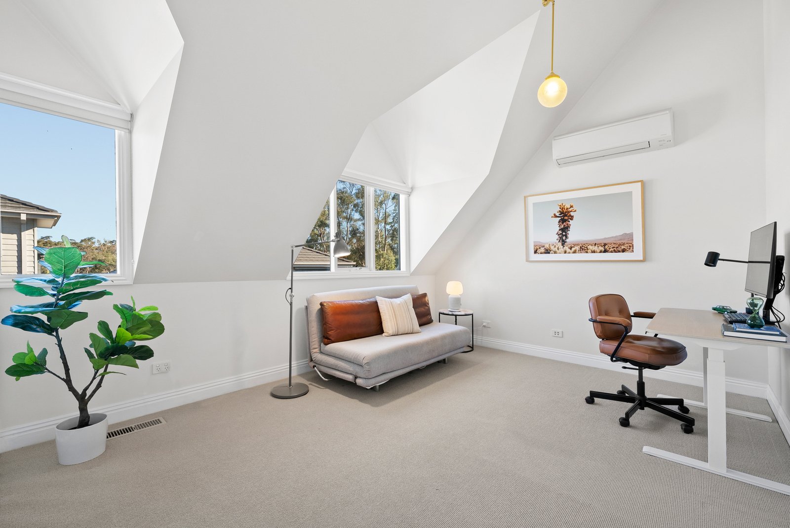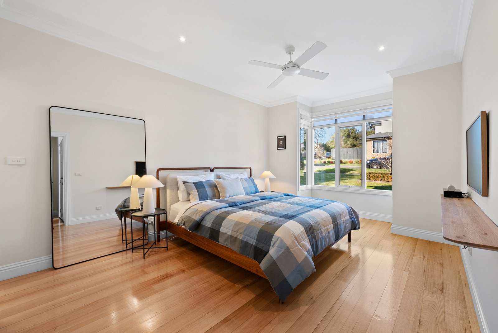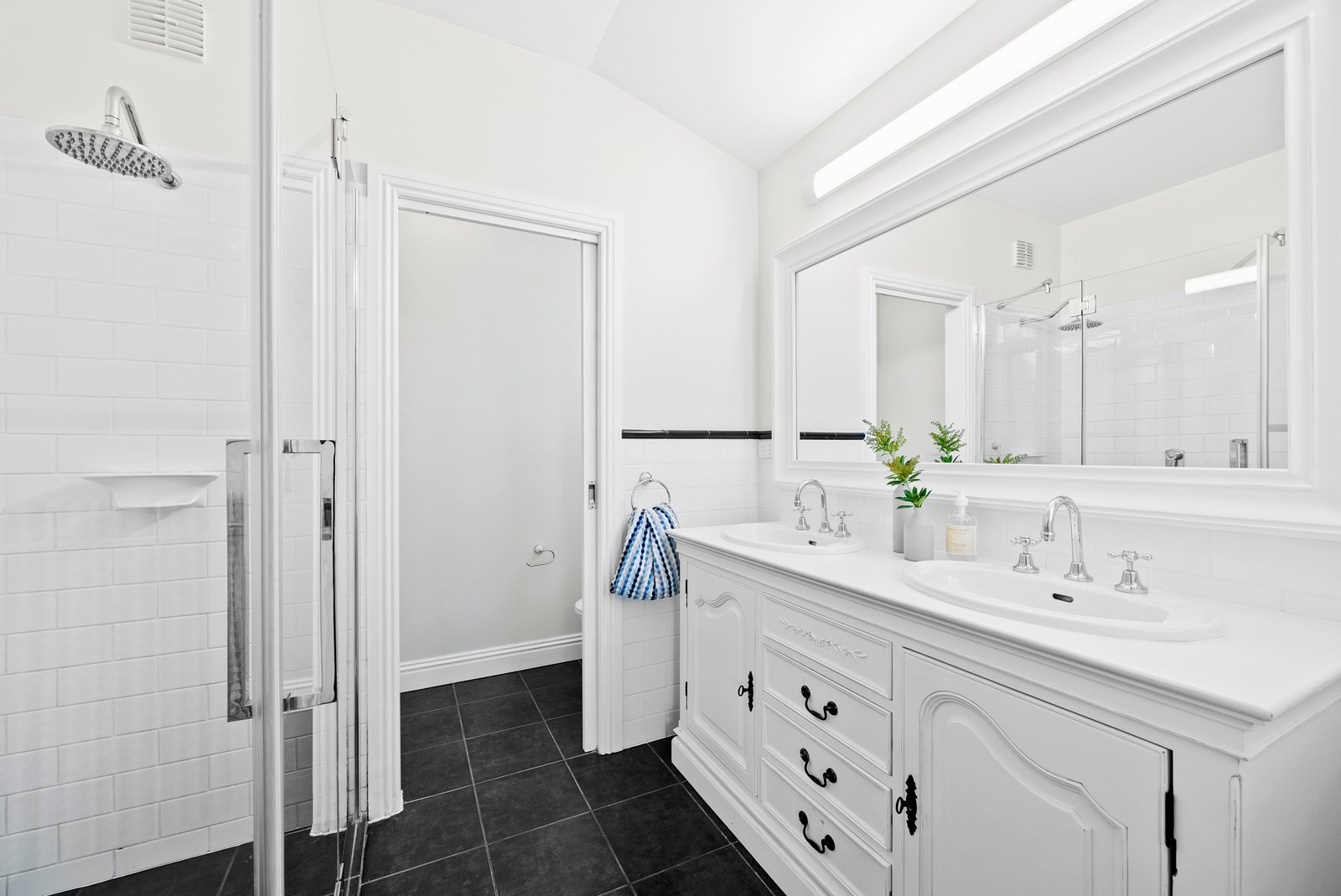 Secluded on the ground floor,the main bedroom features a generous WIR and dual-vanity ensuite, while upstairs, three further robed bedrooms share the elegant family bathroom with freestanding bath plus a pitched ceiling second living room.