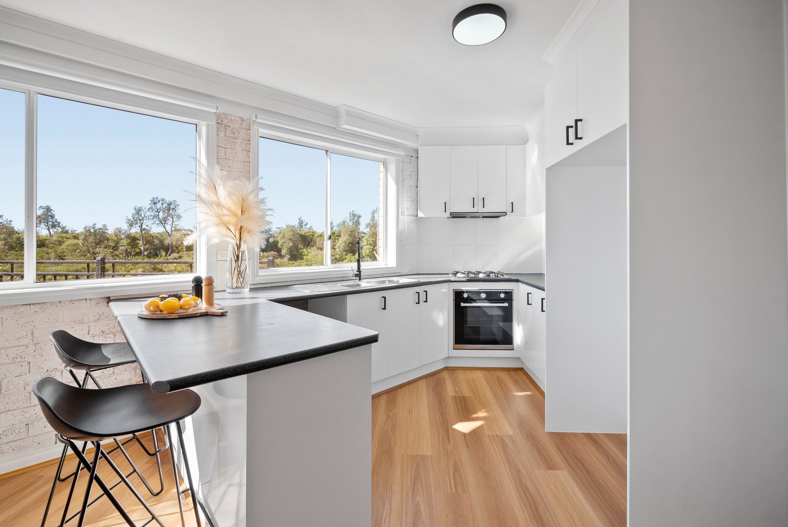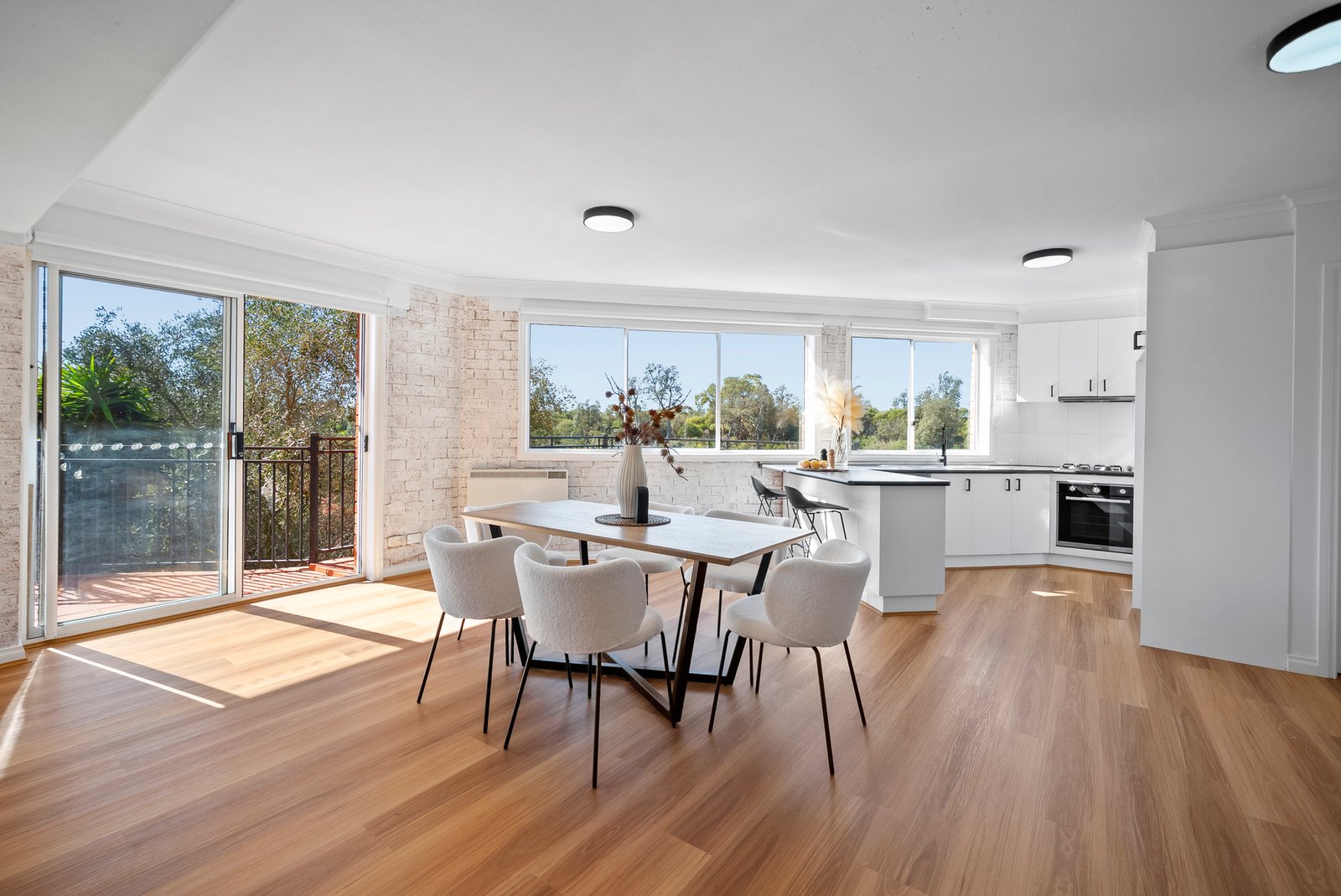 Freshly seductive interiors and premium finishes invite relaxation inside, with feature brick walls, stylish timber laminate floors and plush carpets providing comfort and elegance throughout. North-facing and backdropped by lush, leafy views, the open plan living zone is impressively spacious, with double sliding doors extending out to dual open balconies. Wraparound benches with breakfast bar offer the perfect vantage point to enjoy a meal as you marvel at the view, while quality appliances and plentiful storage will please the home chef. Accommodation is plush, spacious and well serviced by two modern bathrooms, both comprising contemporary finishes, while split system heating and cooling, and a single car space add further comfort and convenience.