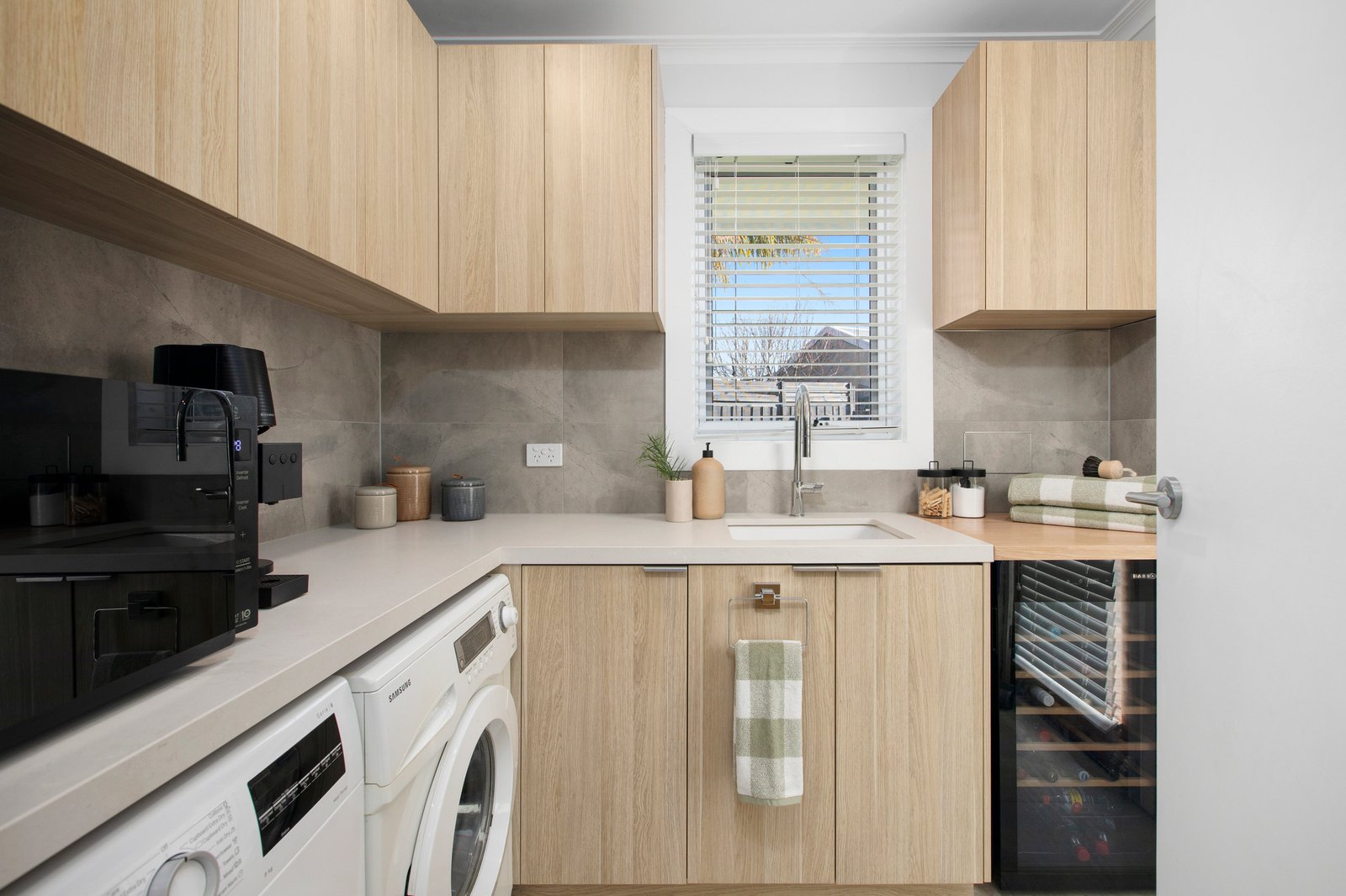 Step beyond the decked front porch and discover ready-to-enjoy accommodation enhanced by sleek plantation shutters, polished hardwood floors and a host of other beautiful high-end finishes. Among its standout features are a welcoming lounge and dining area with alfresco access, along with the residence’s pièce de résistance - its sensational Epicurean kitchen. Here, silky stone surfaces and bespoke cabinetry are complemented by a full suite of prestige Bosch appliances, including an induction cooktop, fully integrated fridge/freezer & dishwasher. The adjacent laundry/butler pantry with wine fridge has been finished to impress and provides invaluable additional preparation & storage space.