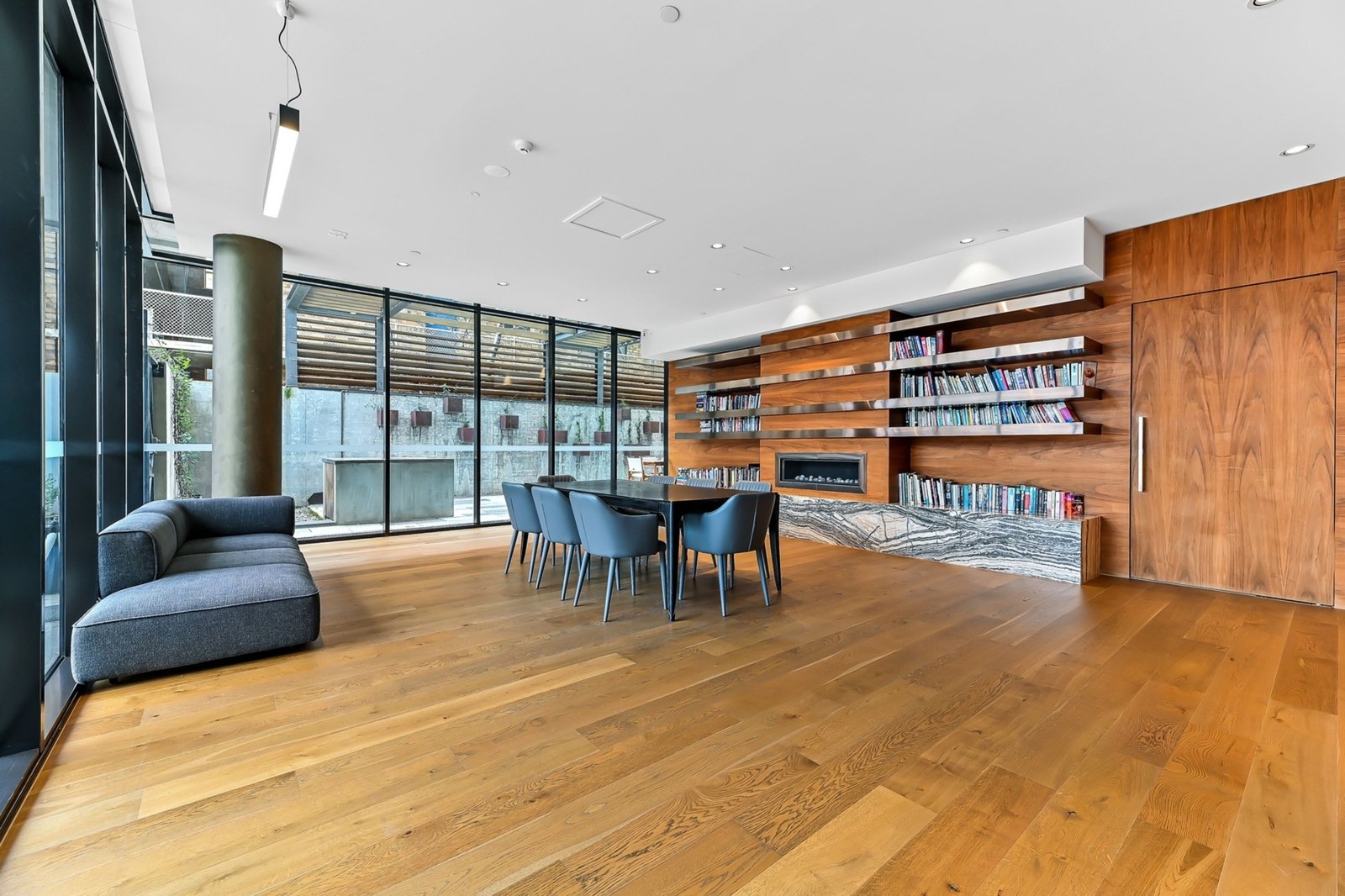 Residents enjoy a private library with WiFi, a chef’s kitchen, an outdoor swimming pool with sheltered dining area, and a fully equipped gym, all located on the ground level.