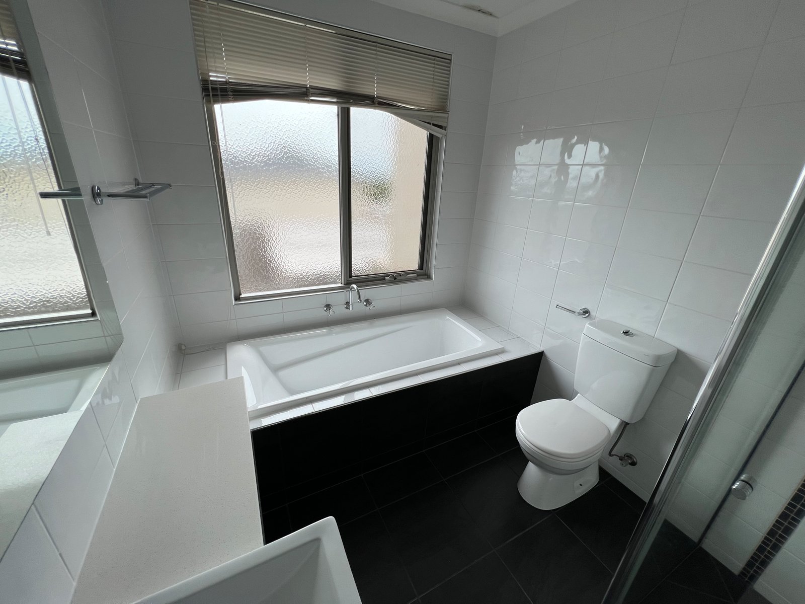 - Beautiful bathroom with bath tub and large shower
