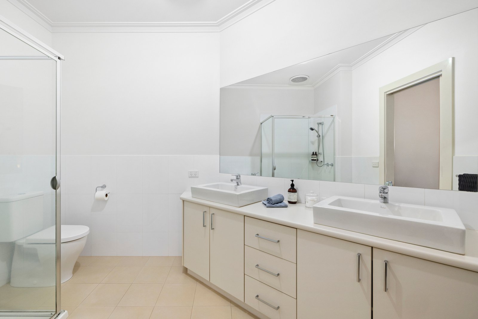 The main bedroom is generous and inviting, boasting a full wall of built-in storage plus a bright ensuite, it is desirably zoned away from the two remaining queen-sized bedrooms (BIRS), which share a full bathroom with handy separate WC. A large laundry and linen closet are also offered, together with split system heating/cooling, an alarm/CCTV & security screens. With the added reassurance of direct house access from the double auto garage, this beautiful home is set amongst professionally landscaped gardens.