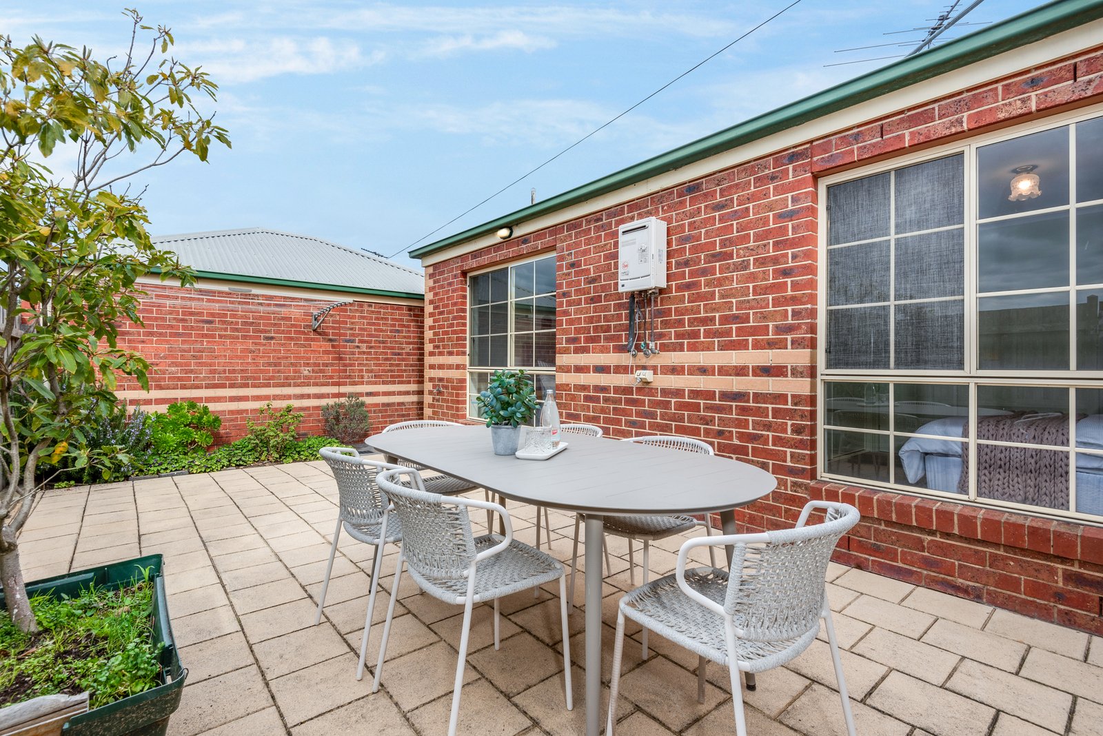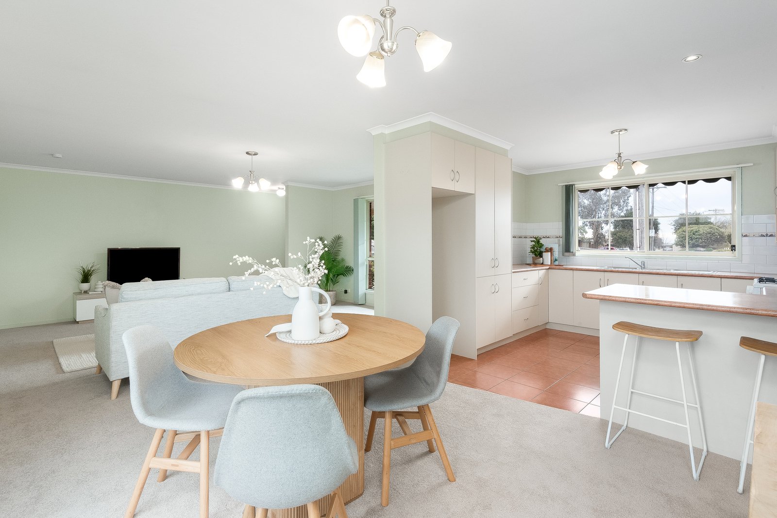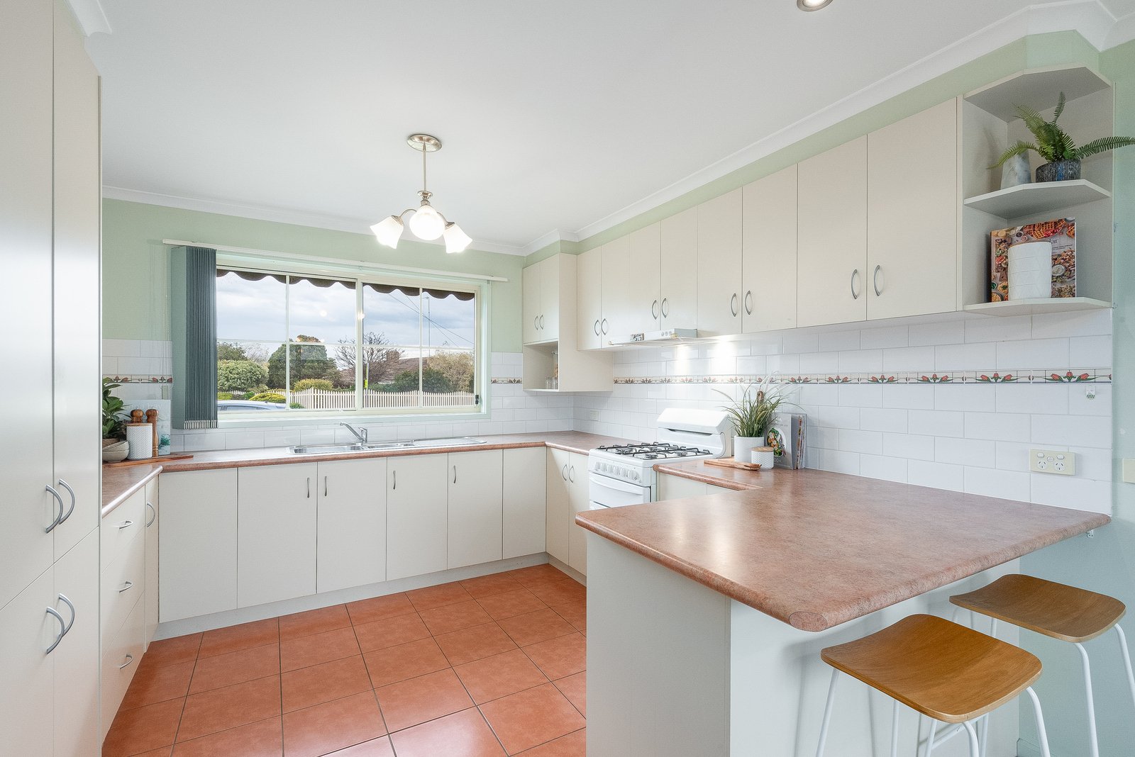 Established gardens and a traditional façade introduce the timeless style of the home. Inside, an inviting open plan living area features north facing windows for warm natural light, with split system heating and cooling for year-round comfort. The well-appointed kitchen includes a 600mm oven and cooktop, ample bench space and plenty of storage. Positioned to overlook the dining space and courtyard, the layout allows for easy everyday living and indoor-outdoor entertaining.
