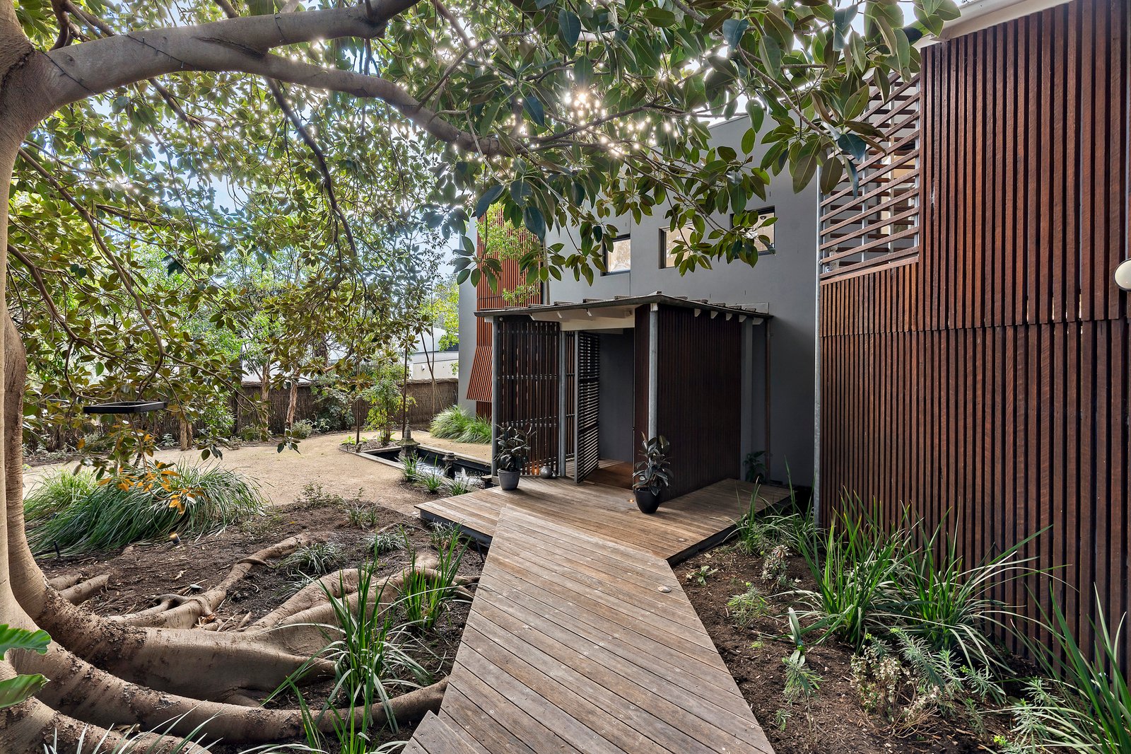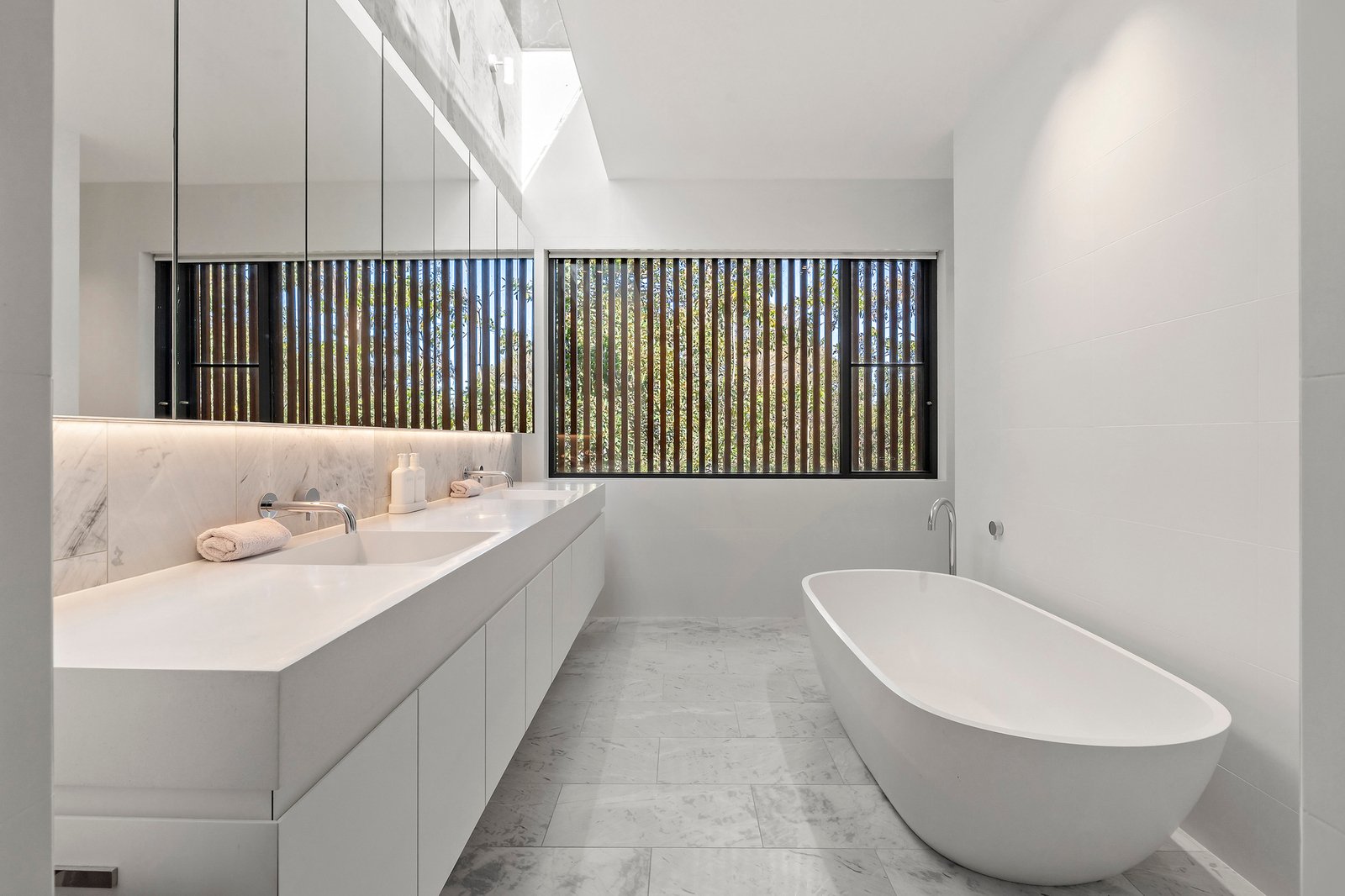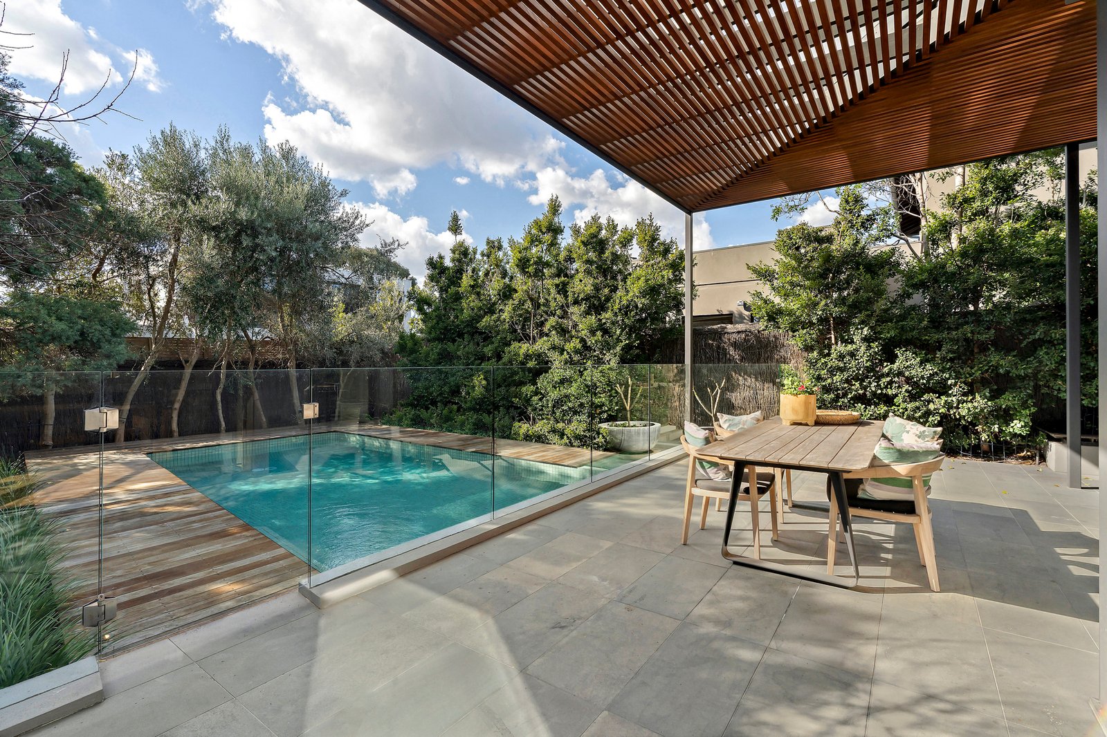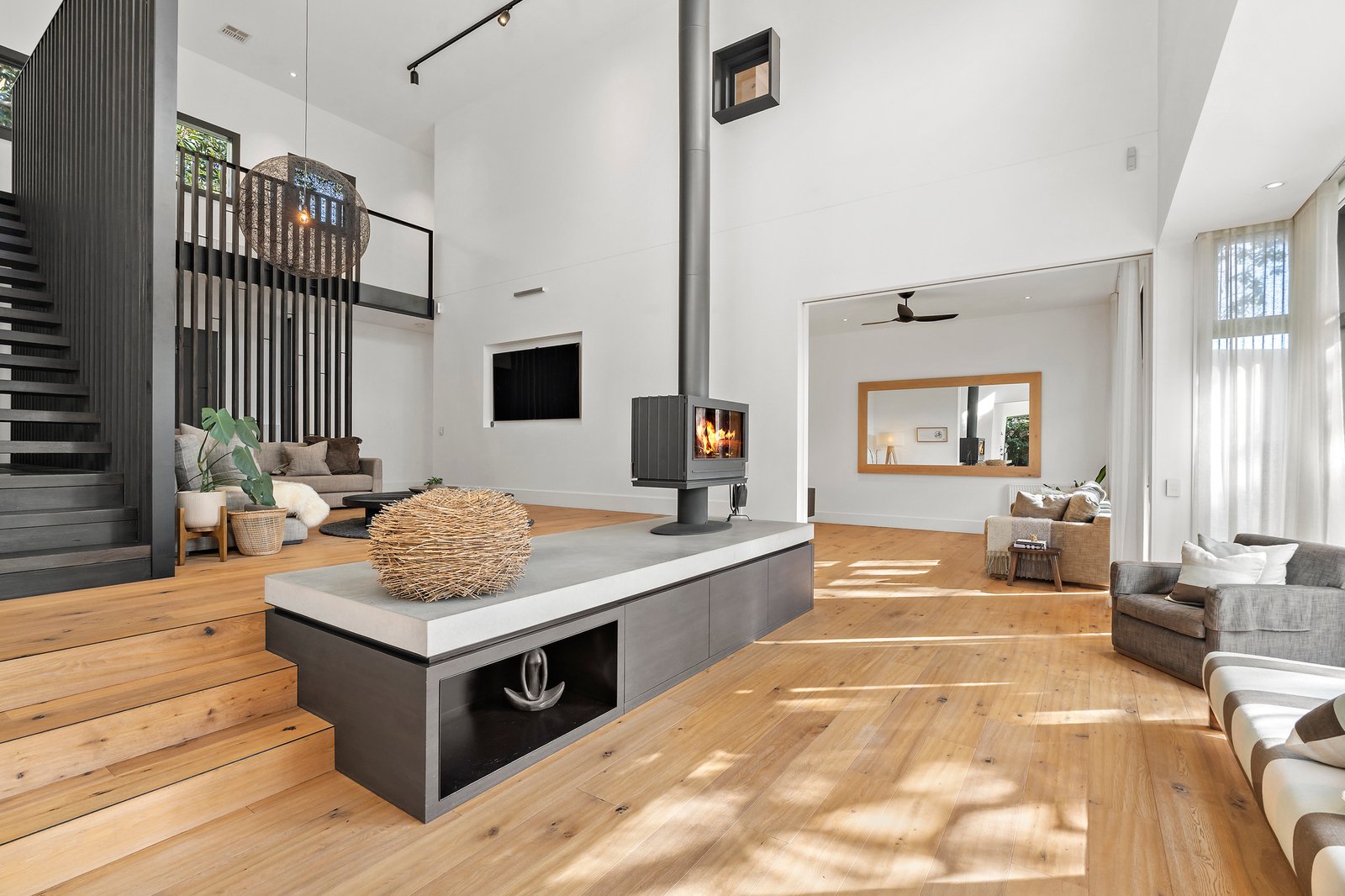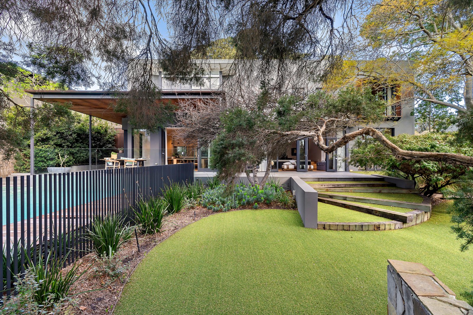 As you step inside, you are greeted by a visually striking interior that exudes luxury at every turn. Multiple living zones cater to every need, from formal gatherings to relaxed family moments. A contemporary lounge with an impressive 10-meter ceiling sets the tone for the home, providing the perfect space to unwind in style. A series of tall French doors open to a sprawling outdoor area that is an entertainer’s dream—an expansive poolside oasis surrounded by lush native gardens, originally designed by landscape architect Fiona Brockhoff, offering the ultimate in privacy and tranquility.