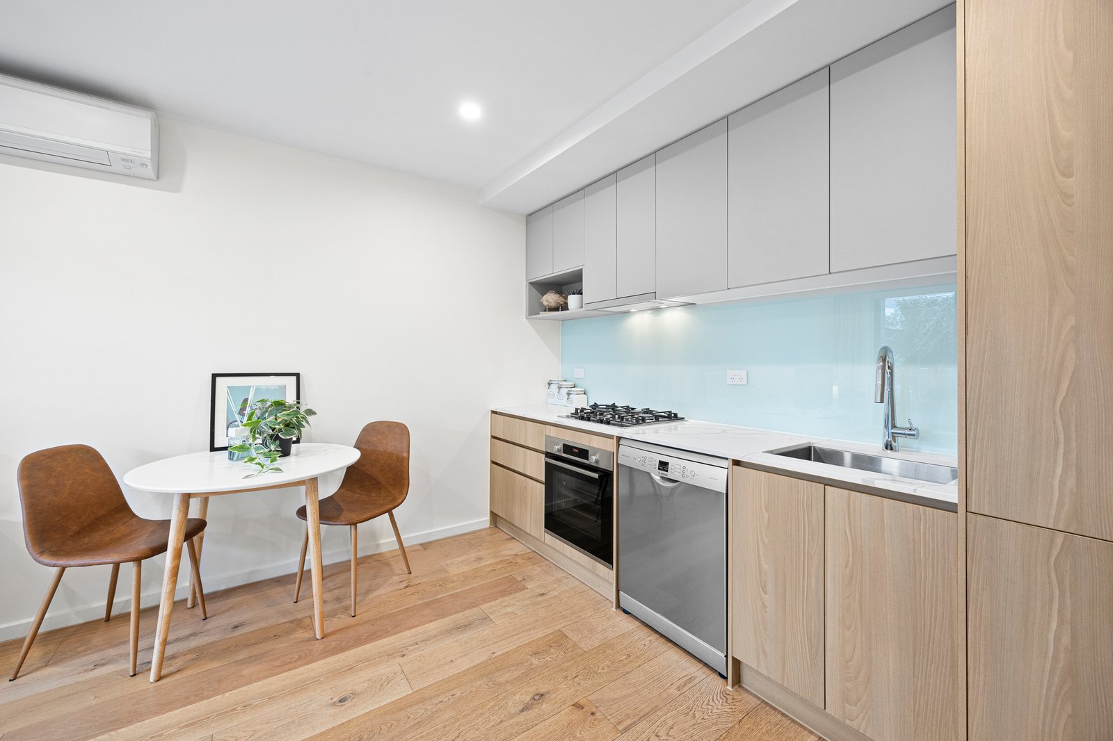Ideal for first-time buyers, savvy investors, or downsizers, wide engineered oak floors glide through the single-level layout into a bright, open-plan living, dining, and kitchen zone. The kitchen impresses with stone benchtops, premium Bosch appliances including a 4-burner gas cooktop, oven, dishwasher, and abundant cabinetry.