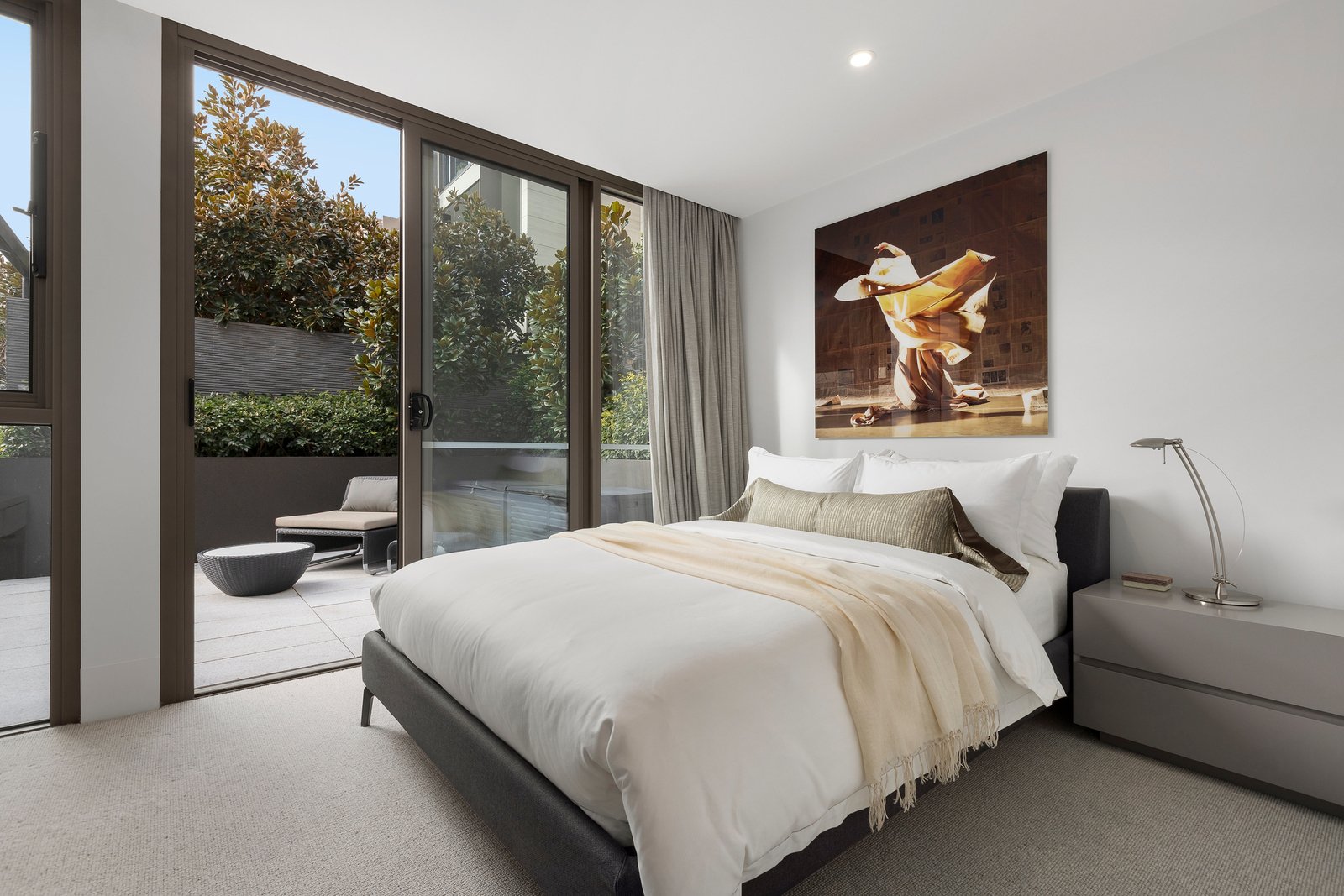 In this world of secluded opulence, every detail is considered and every comfort anticipated, from the superbly zoned three-bedroom, two-bathroom layout to the seamless interplay between luminous interiors and an exclusive outdoor retreat. Full-height glazing draws the eye to a spectacular tiered garden outlook, while the full-length terrace features a louvred pergola and tranquil pockets for entertaining, unwinding, and basking in the Bayside sunshine.