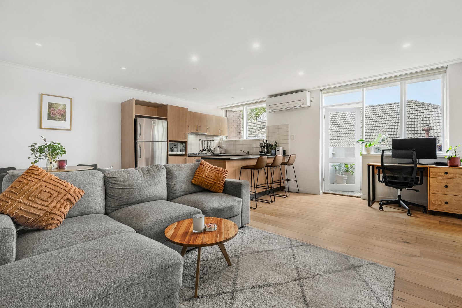 Set back from the street in a solidly built block of just nine, this updated top-floor apartment offers peace, privacy, and style. Timber flooring flows from the entrance hall into a sunlit open-plan living and dining zone, with space for a study nook. The well-appointed kitchen, with ample storage, opens to a sunny covered balcony, ideal for a...