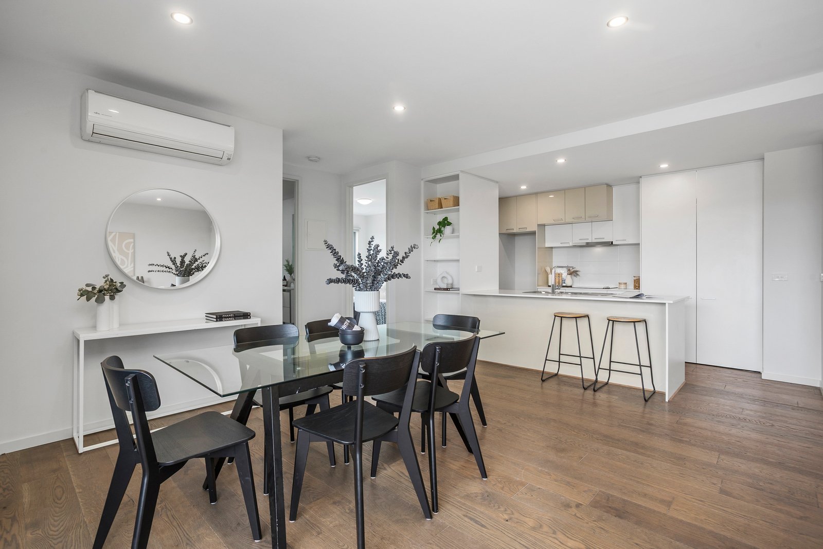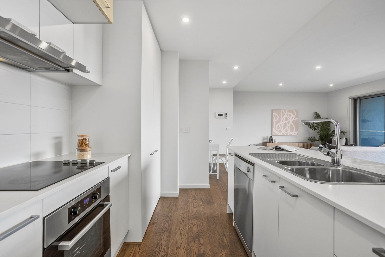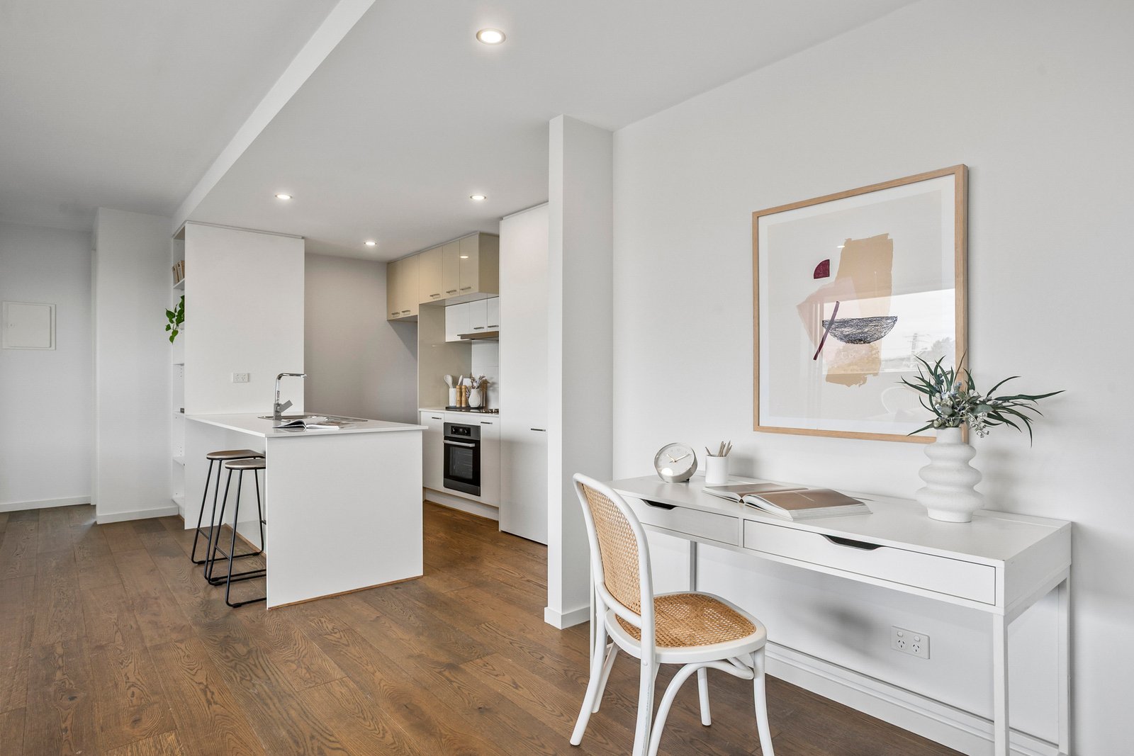 The heart of this home showcases beautiful timber flooring throughout the open plan living and dining area, creating a seamless flow that's perfect for both entertaining and everyday relaxation. Natural light floods the space, highlighting the quality finishes and creating an inviting atmosphere from the moment you step inside. The contemporary kitchen features sleek stone benchtops, quality stainless steel appliances, and clever storage solutions that deliver both style and functionality whether you're preparing a quick breakfast or hosting dinner parties.