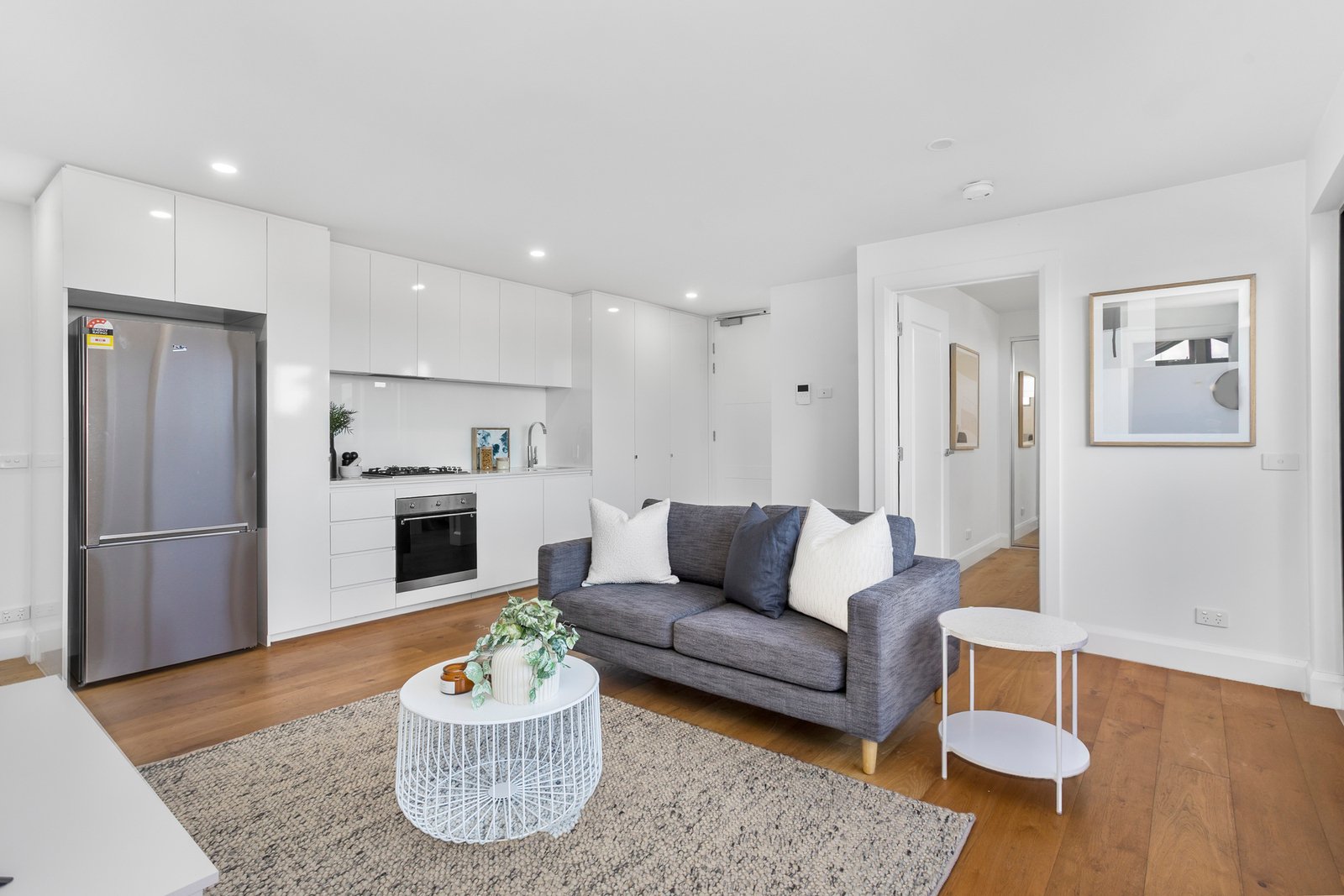 This modern, light-filled apartment showcases beautiful timber floorboards throughout and stunning architectural windows that flood the interiors with natural light, creating a sophisticated urban sanctuary. The expansive open-plan living and dining area flows seamlessly to a private balcony boasting spectacular city views, transforming everyday living into effortless indoor-outdoor entertaining. The contemporary kitchen features sleek stainless steel appliances, integrated dishwasher, making it perfect for both casual meals and sophisticated dinner parties.
