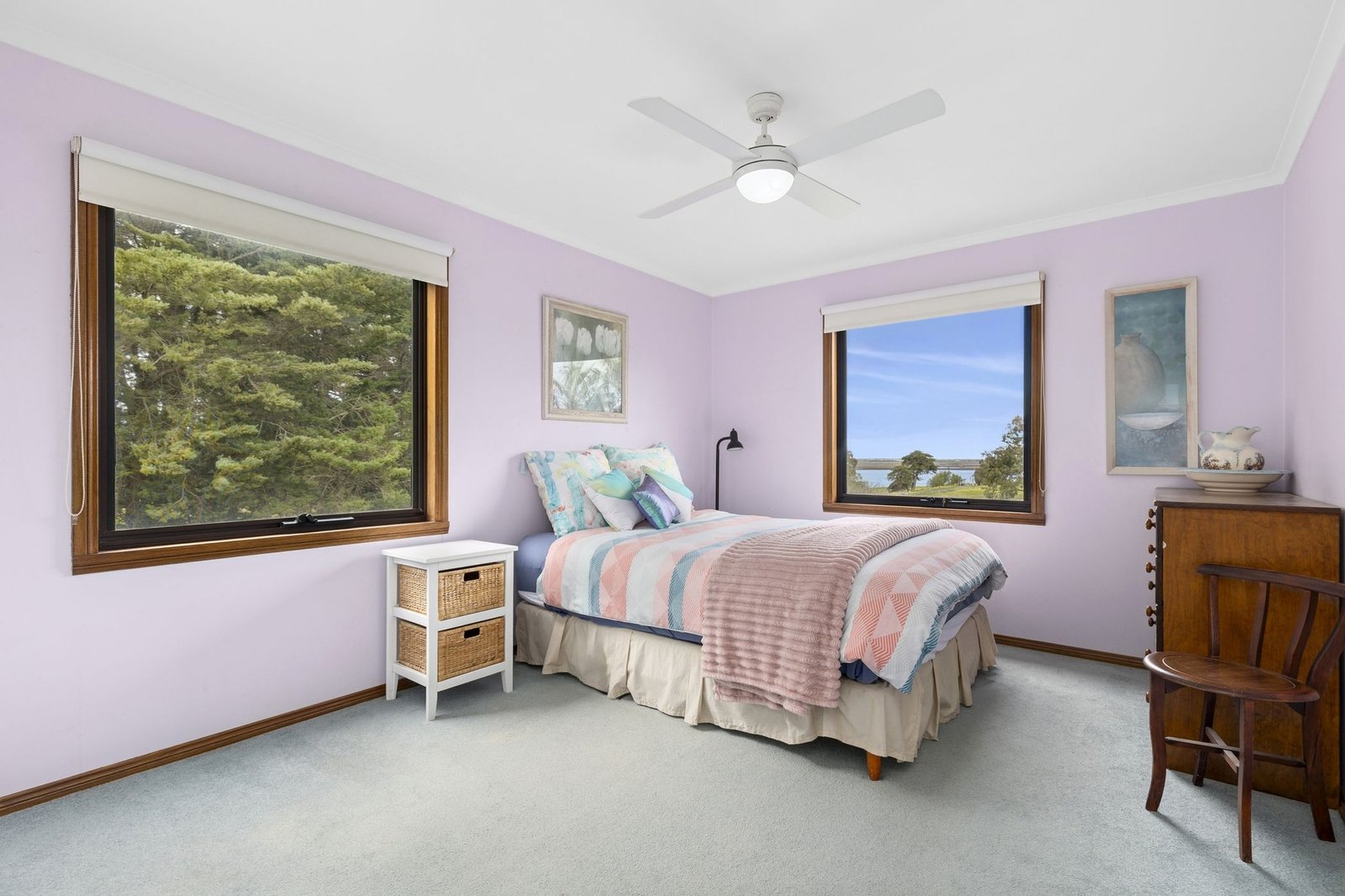 Comprising six bedrooms with built-in robes, three are positioned on the ground floor, serviced by an elegant family bathroom. Three further bedrooms are upstairs, accompanied by a second bathroom and separate powder room. Access to a balcony on this level provides the perfect space to take in the lake views and picturesque scenery of your surrounds. Additional home features include central heating, split system heating and cooling, ceiling fans, and roof access for storage.