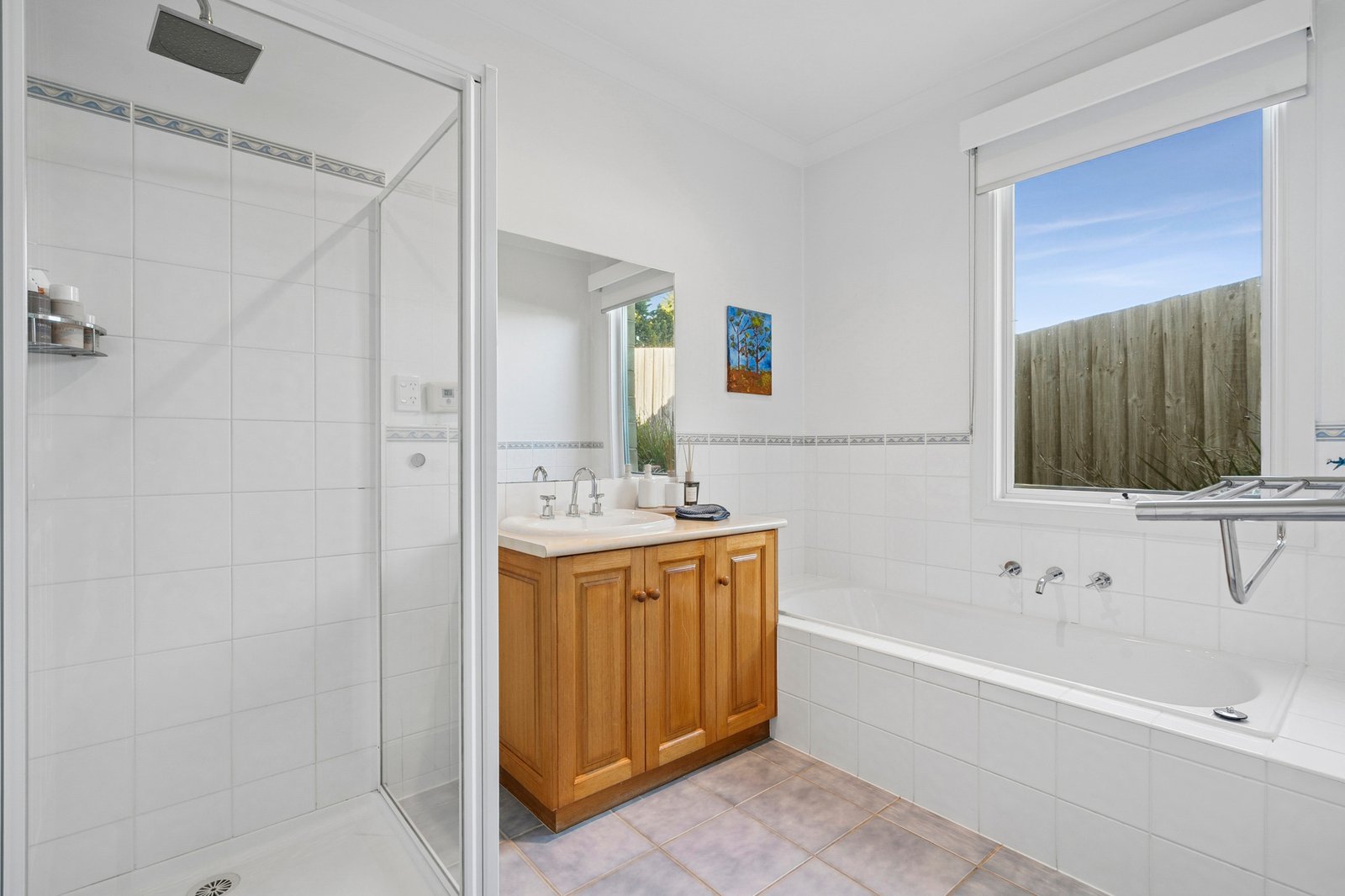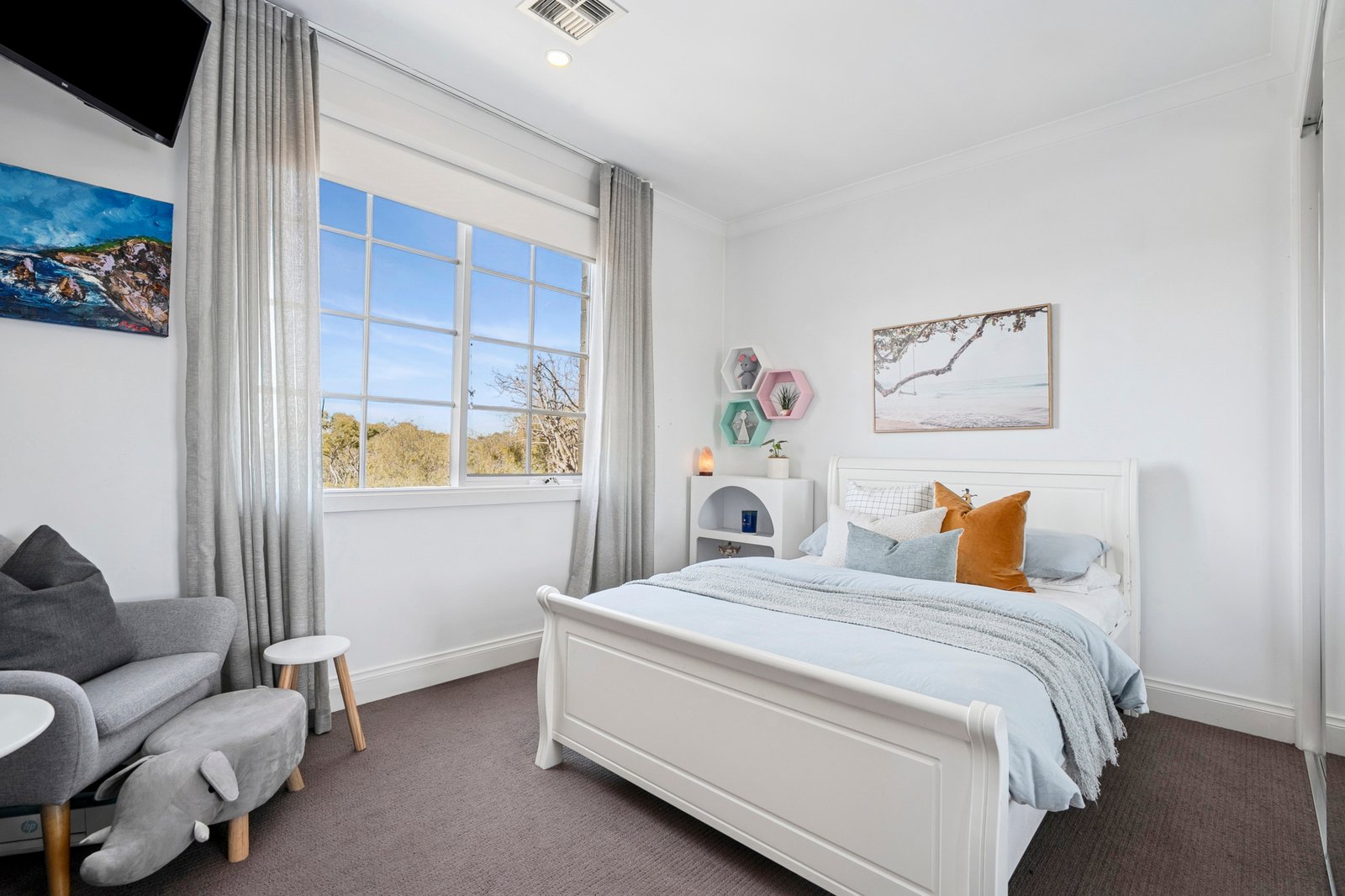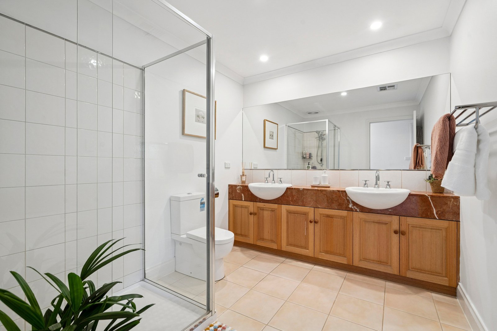 The main bedroom is a private retreat occupying the first floor, featuring elevated views, large walk-in robes/dressing room, and a tastefully presented ensuite with dual vanity. Four further bedrooms are positioned on the ground floor, all include built-in robes, serviced by two separate bathrooms.