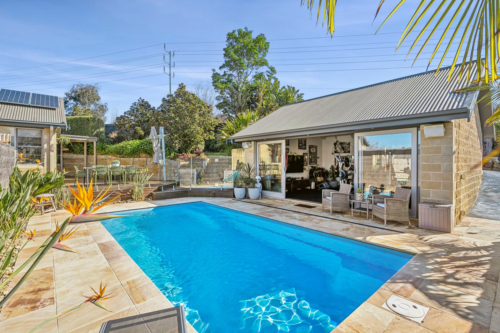 Heading outside, the luxury continues. A wrap around veranda offers a selection of spaces to enjoy the sun or shade, and a large sun deck provides the perfect space for poolside entertaining. The solar heated in-ground pool is accompanied by a resort-style pool house with timber-lined raked ceilings, cabinetry and sink facilities, providing a spacious and versatile studio that can be utilised all year round. The huge block allows plenty of space for the kids to run around, with a cubby house and enchanting gardens to explore. Two large water tanks and an irrigation system service the lush grounds. The oversized double garage includes workshop facilities, and a huge under-house storage space. Wide side access allows for secure parking of your boat, van or trailer, and a large shed provides for additional outdoor storage, adding to the outstanding facilities of the property.