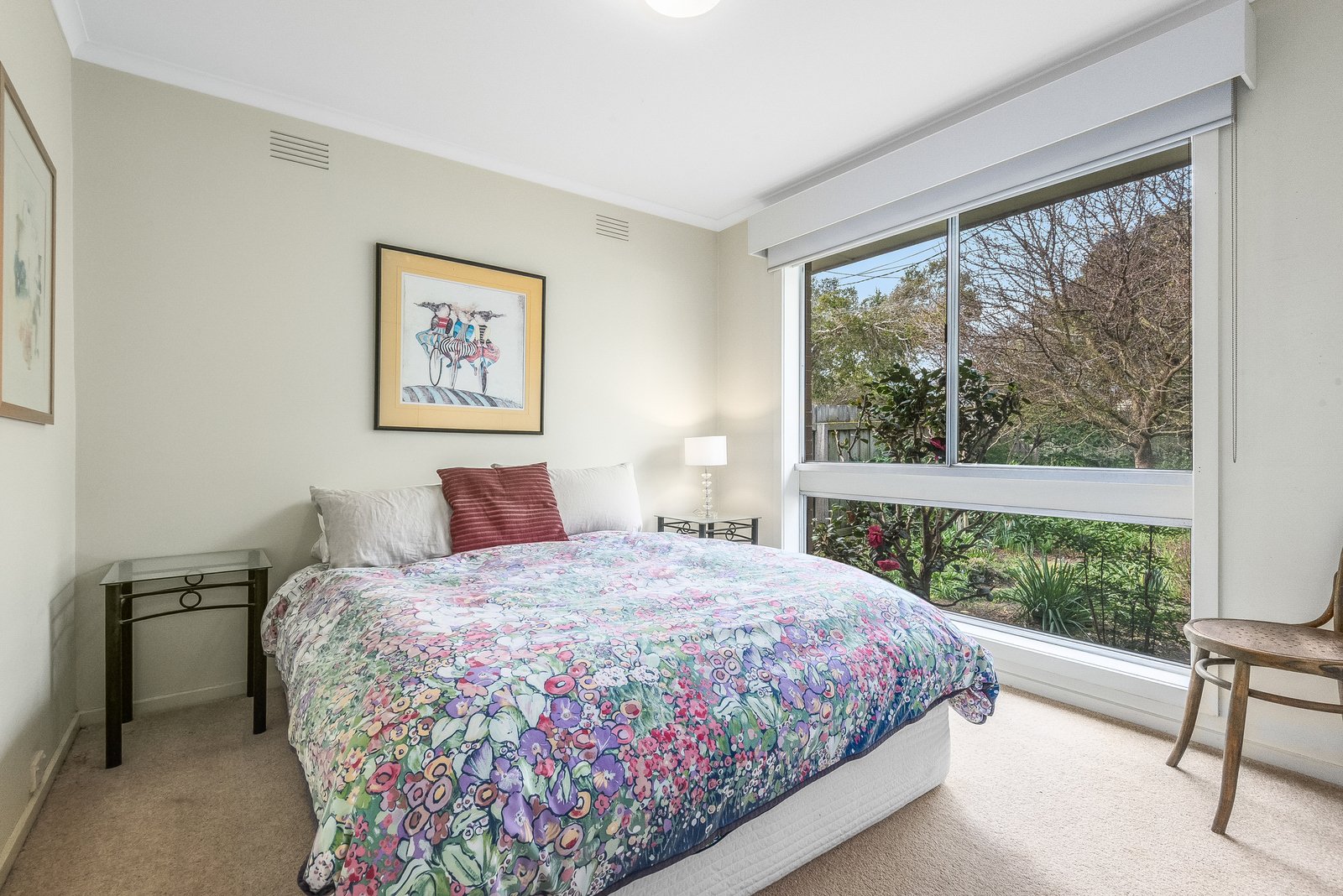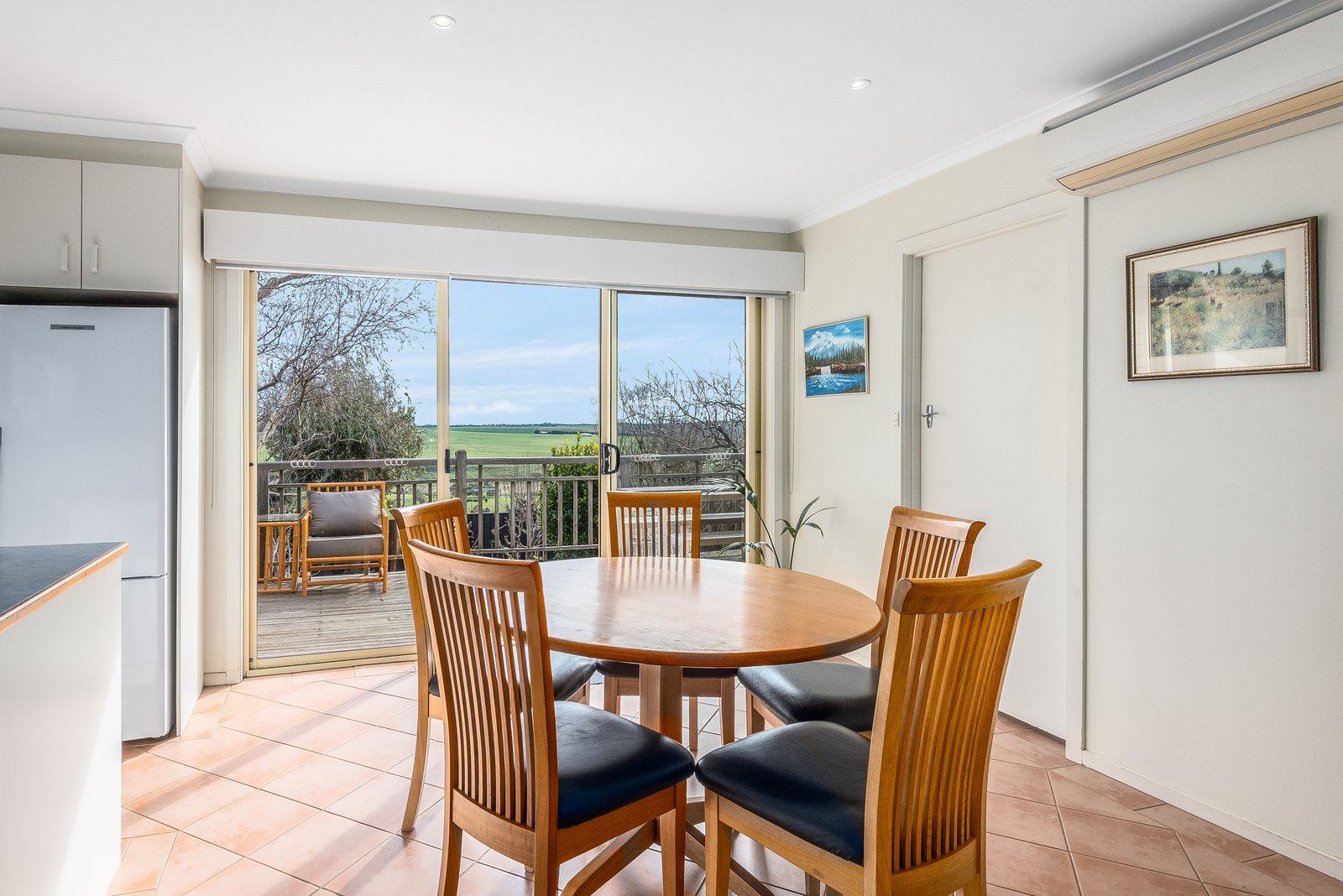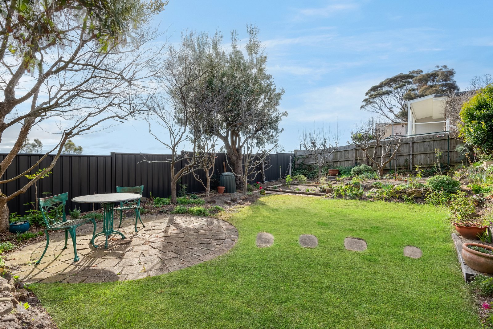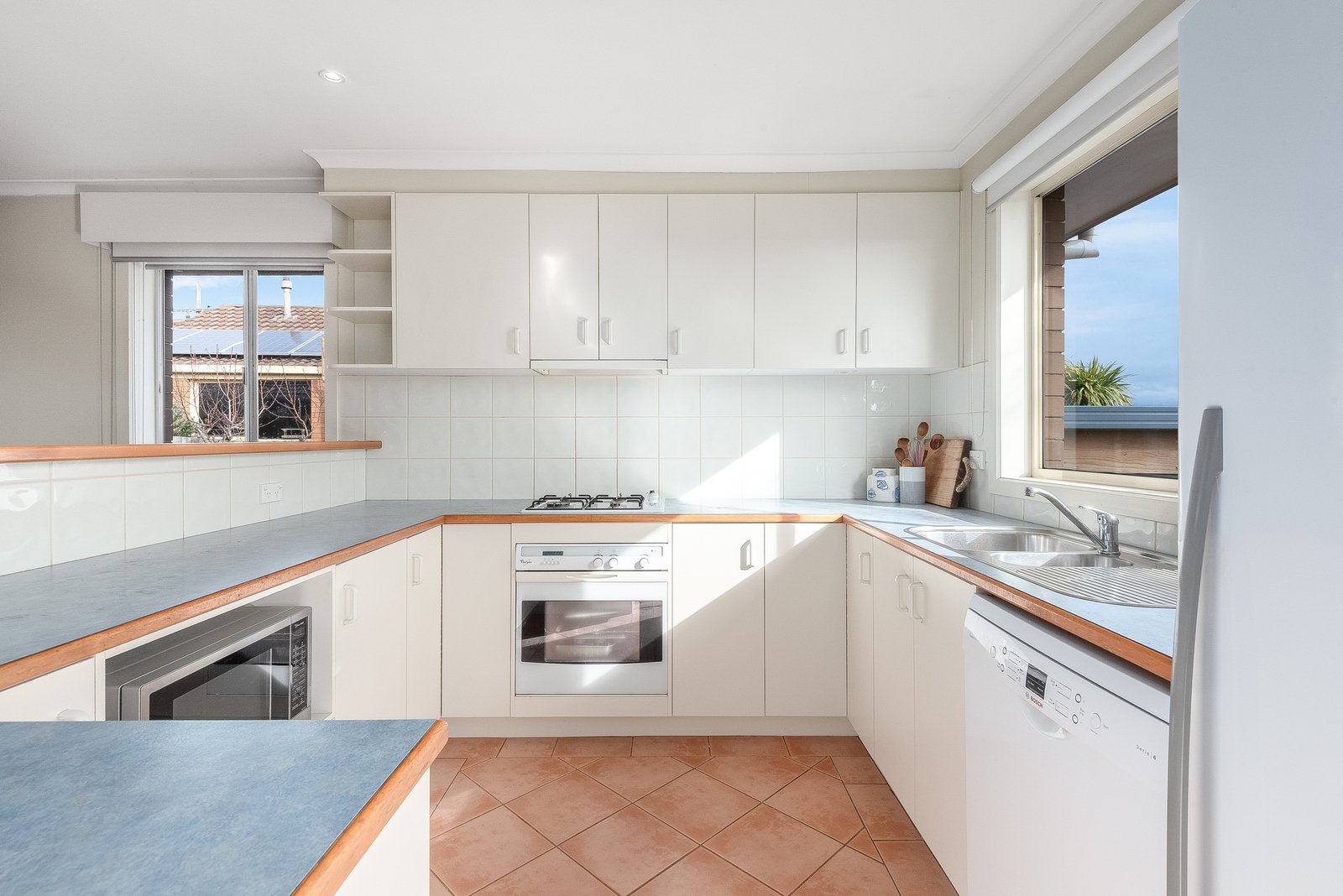 The classic brick veneer home is nestled in a leafy garden setting. From the entry, an inviting open plan kitchen, dining and living area features a woodfire heater for a cosy atmosphere, along with split system heating and cooling for year-round comfort. The well-appointed kitchen is equipped with 600mm oven, gas cooktop, and dishwasher. Perfectly positioned to overlook the dining space, rear deck, and take in the picturesque views, the layout is ideal for everyday living and effortless entertaining.