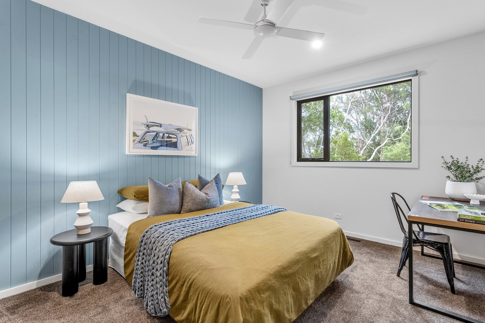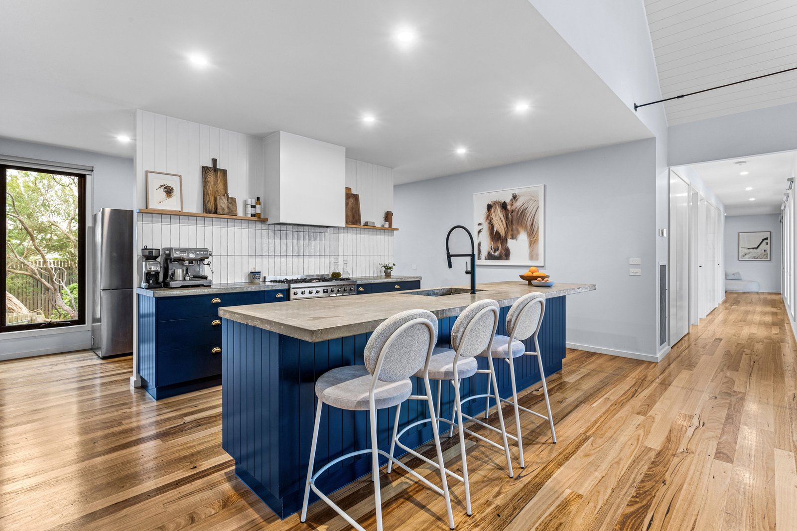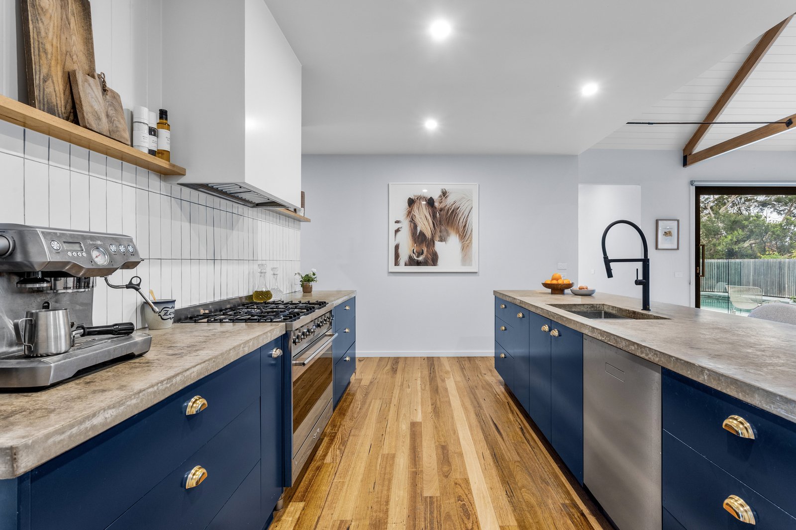 The dedicated home office, featuring a skylight, ducted heating and zoned cooling, double glazing, ceiling fans, and Tasmanian oak floors, all speak to quality. Yet, the lifestyle offering continues well beyond the interiors. There’s a three-bay, 80sqm (approx.) powered shed, a double remote garage with internal entry, a fully appointed Weber BBQ kitchen featuring a wood-fired pizza oven, an outdoor shower, and rainwater and bore supply for the gardens. Located just minutes from Rye’s foreshore, surf beaches, freeway access, and hot springs, it’s the kind of home you drive past without knowing what lies beyond, one that rewards those lucky enough to arrive.