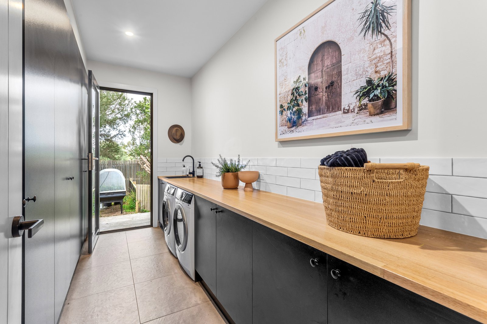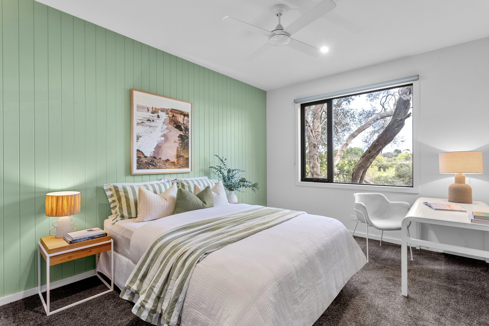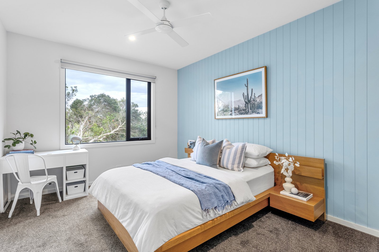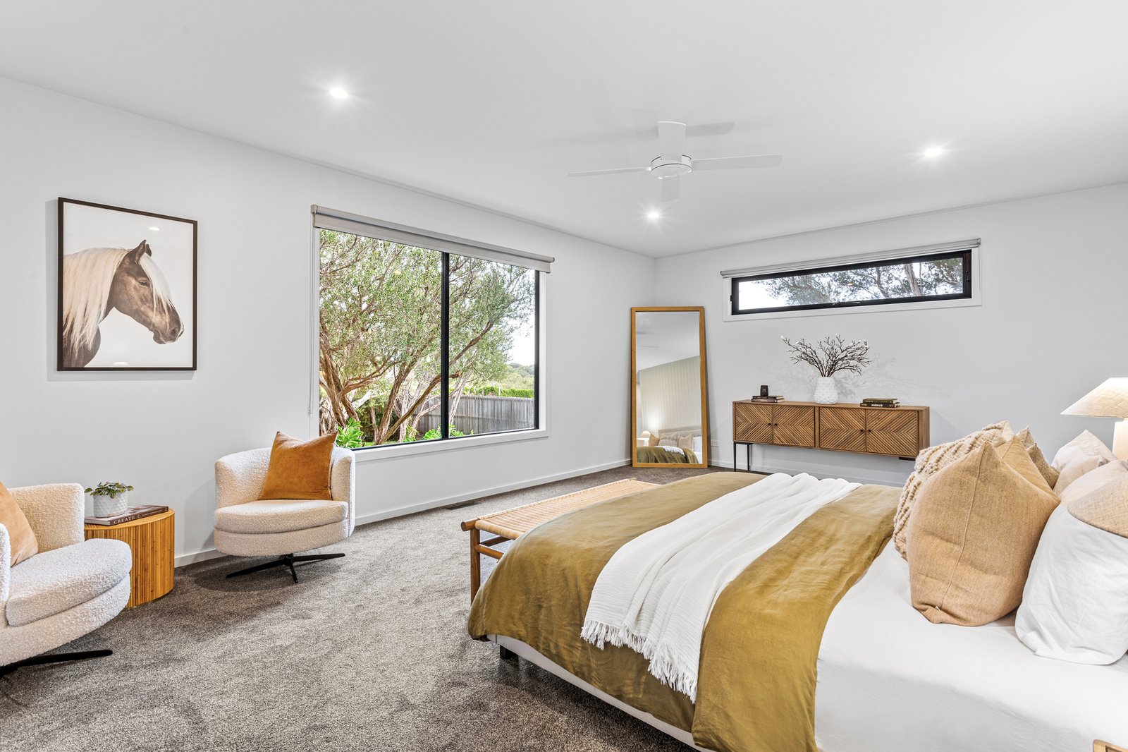The dedicated home office, featuring a skylight, ducted heating and zoned cooling, double glazing, ceiling fans, and Tasmanian oak floors, all speak to quality. Yet, the lifestyle offering continues well beyond the interiors. There’s a three-bay, 80sqm (approx.) powered shed, a double remote garage with internal entry, a fully appointed Weber BBQ kitchen featuring a wood-fired pizza oven, an outdoor shower, and rainwater and bore supply for the gardens. Located just minutes from Rye’s foreshore, surf beaches, freeway access, and hot springs, it’s the kind of home you drive past without knowing what lies beyond, one that rewards those lucky enough to arrive.