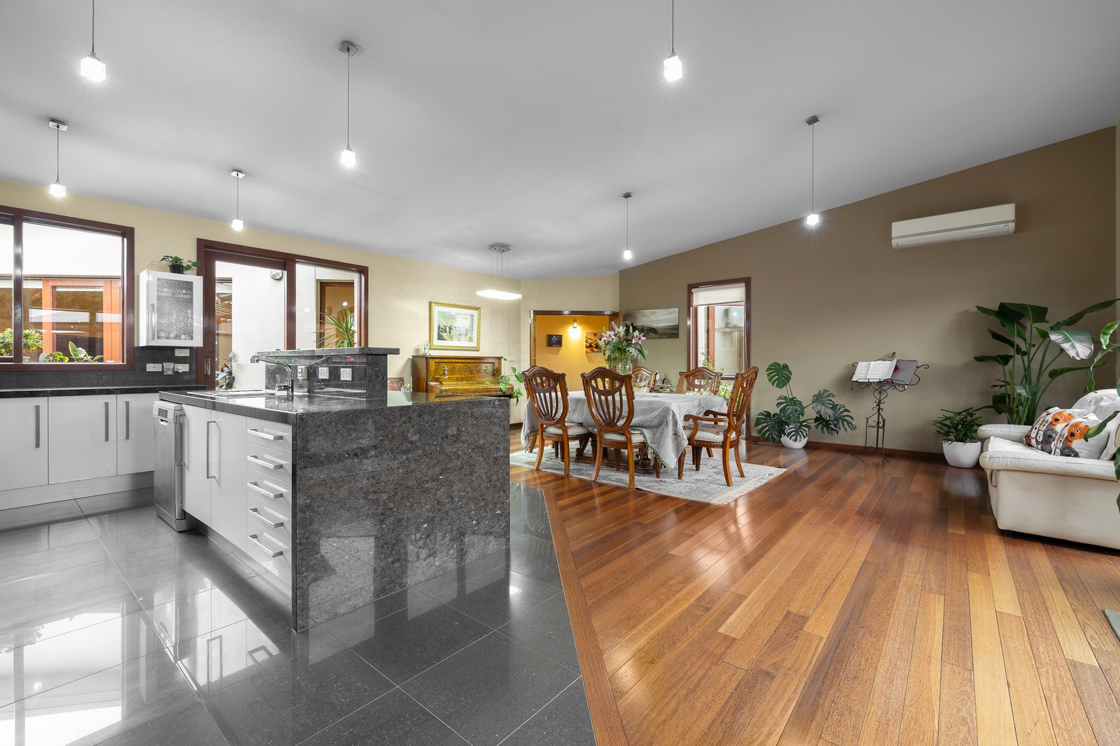 At its heart lies a statement kitchen featuring stone benchtops, sleek cabinetry, and premium stainless-steel appliances. Overlooking a generous living and dining domain, whether for family dinners or entertaining guests. Large sliding doors extend the living space to multiple outdoor zones, including a decked gazebo and private courtyards, offering a lifestyle that flows effortlessly between inside and out.
