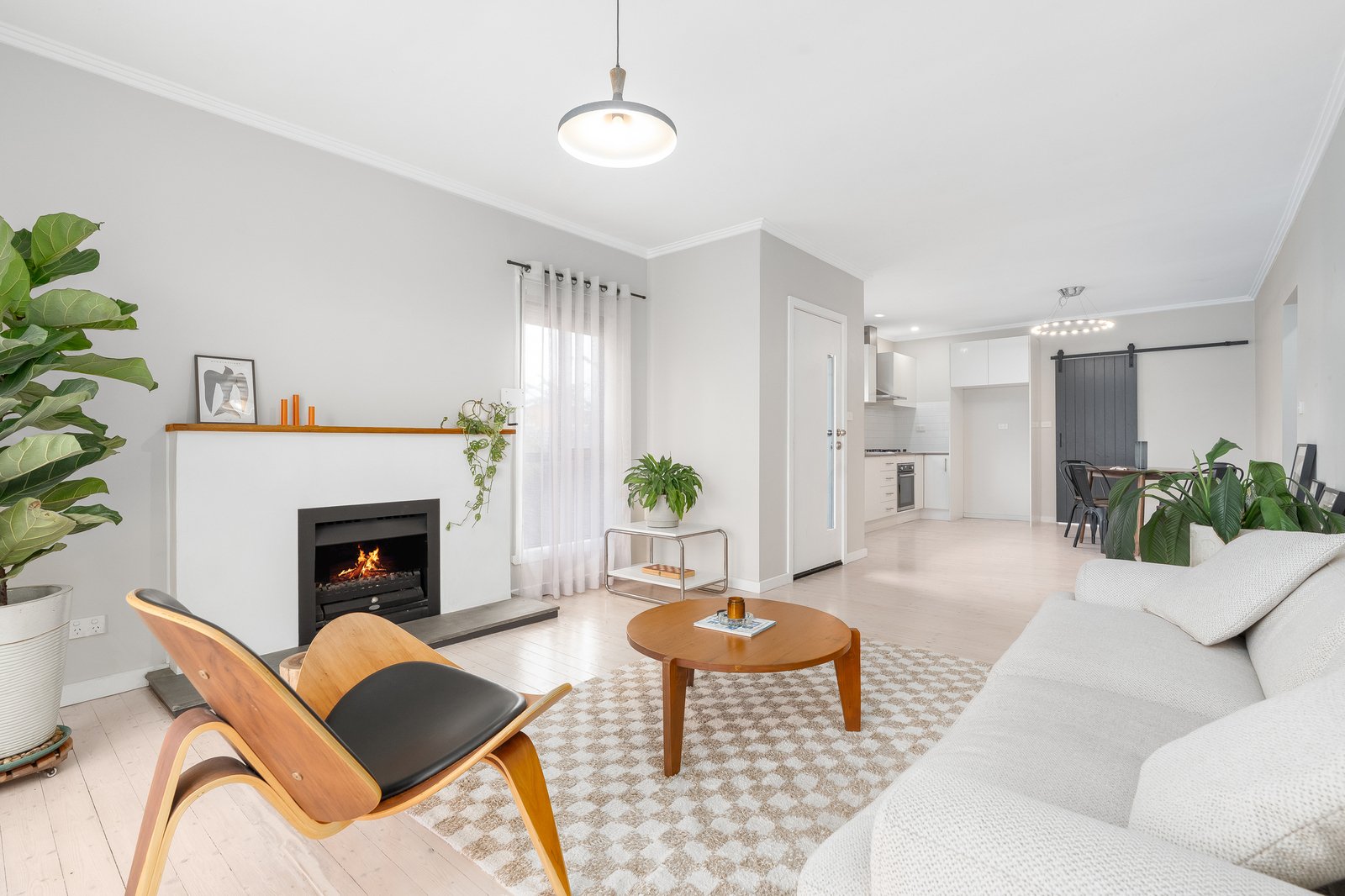 • Open plan kitchen and living with timber floors, gas fireplace and Fujitsu reverse-cycle heating and cooling.