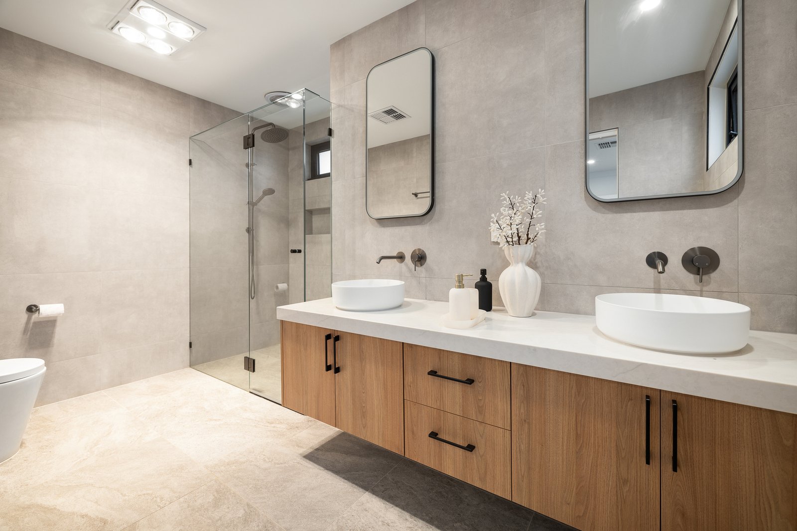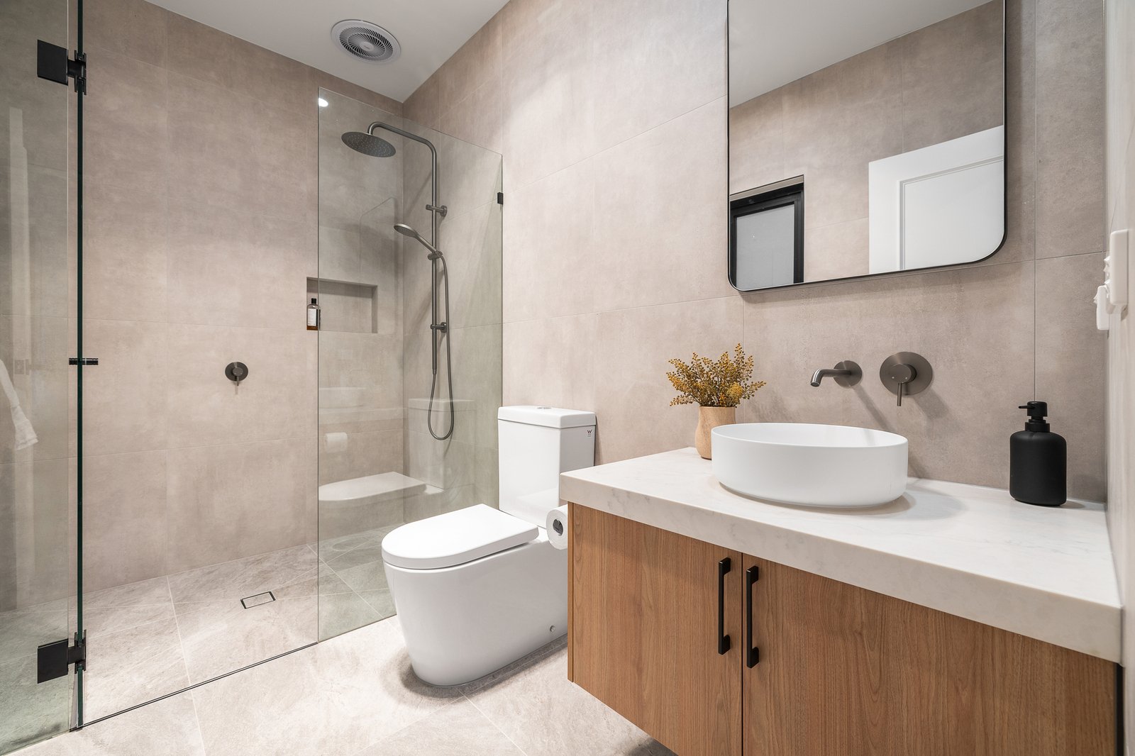 A showcase of up to the minute style with multiple walk-in robes (the main shining with LED lighting), this climate-controlled home features floor-to-ceiling concrete-style tiling for each bathroom, thick stone benchtops (even for the bespoke laundry), and European Oak floors meeting premium carpets. Secured by video-intercom with the added peace of mind of gated 3-car parking including a carport and garage, even this location is all about easy living.