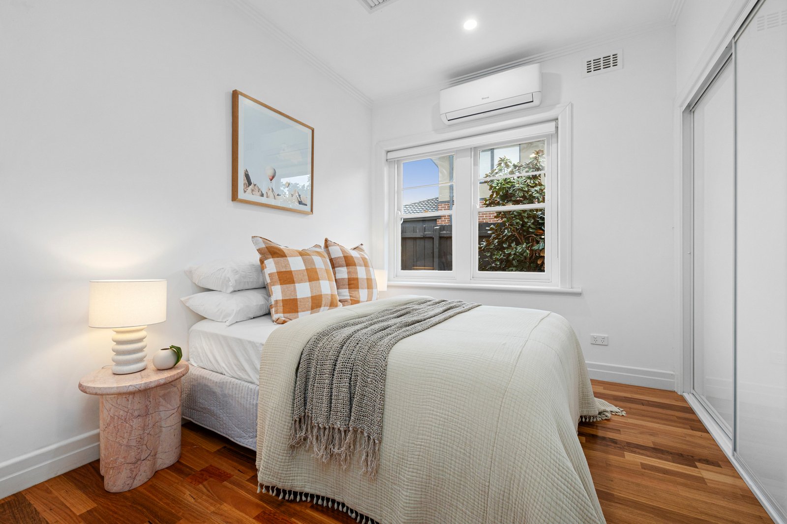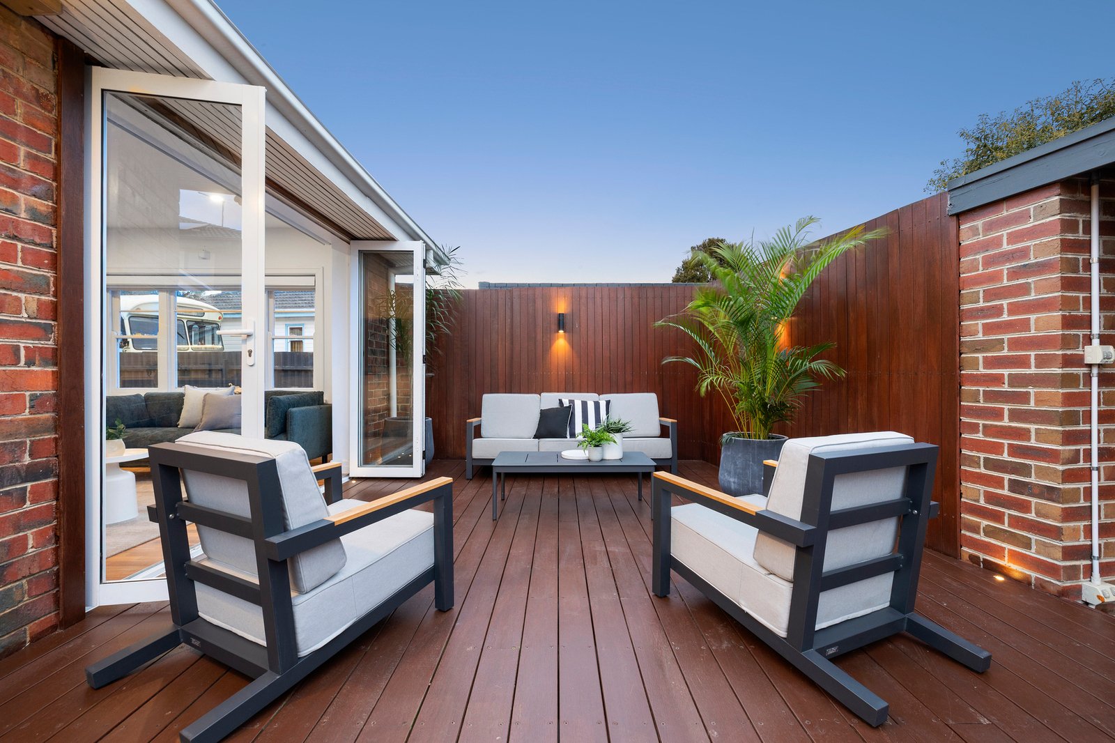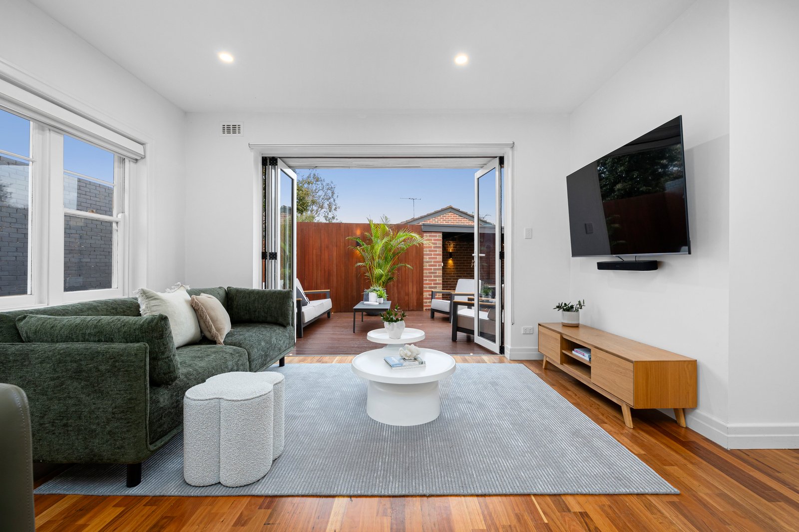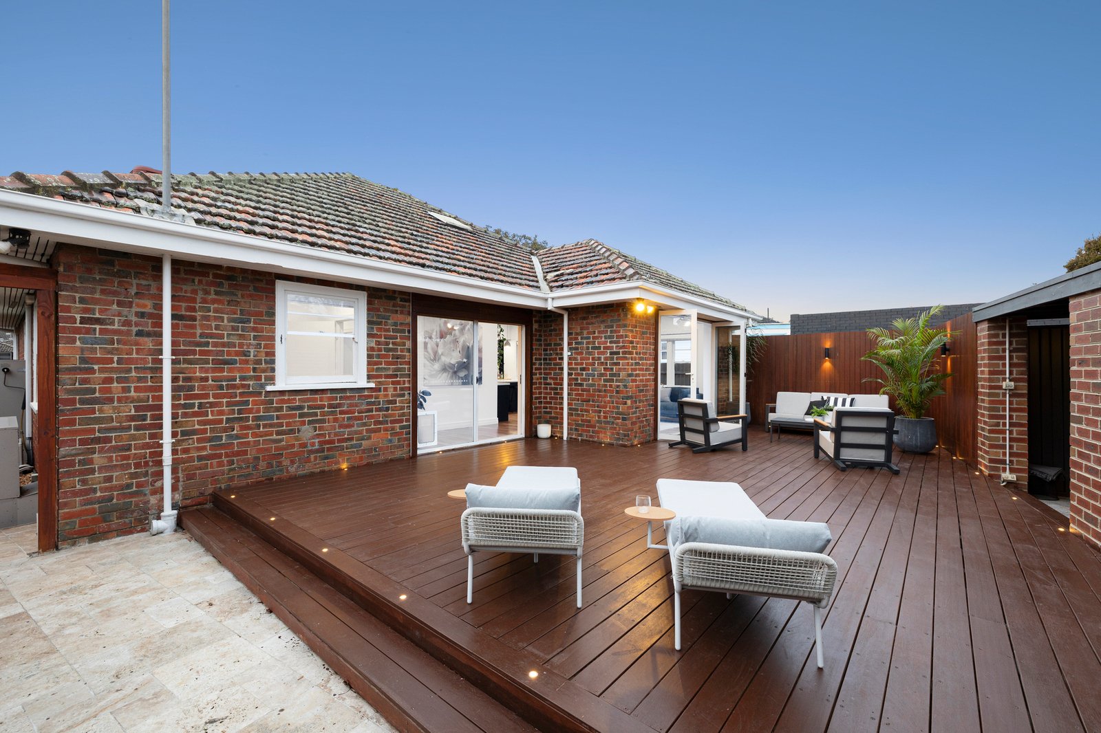 Enhanced by chic hardwood flooring & on-trend plantation shutters, the accommodation opens to a tranquil lounge with original fireplace – a space that could also be utilised as an additional bedroom if needed - while further on discover a light-filled living/dining area and sophisticated gourmet kitchen with quality appliances, stone surfaces & multi-function Billi tap. This fabulous zone is seamlessly connected to the sundrenched alfresco deck via bi-fold doors for endless indoor-outdoor enjoyment.