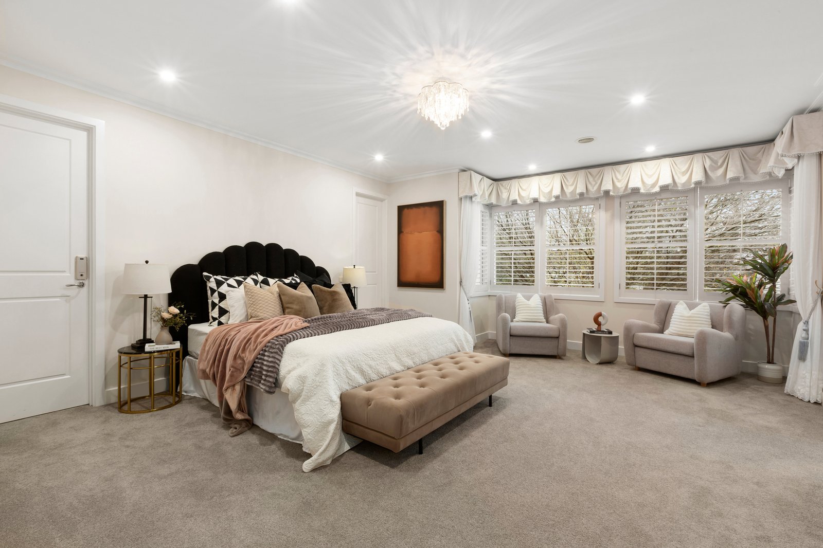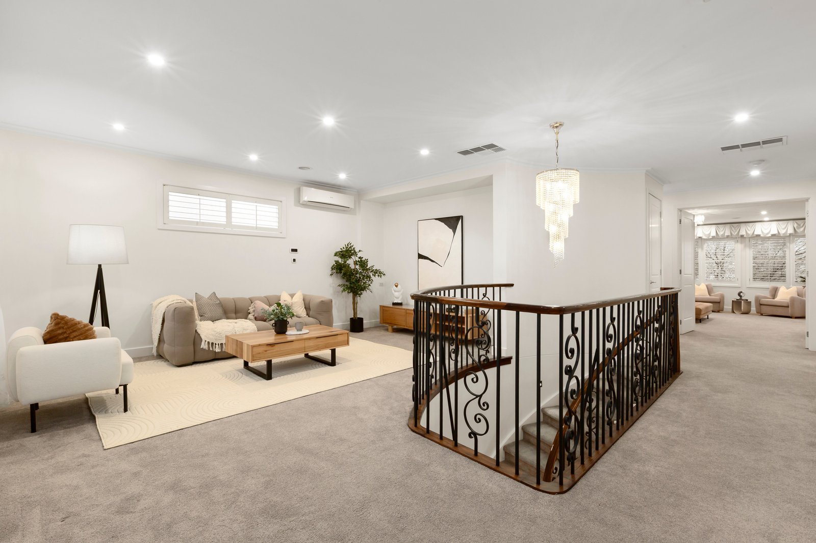 Designed for year-round enjoyment, the outdoors is a private family haven where the sparkling swimming pool takes centre stage. Low-maintenance gardens, a north-facing sun deck and a separate home office or studio adds flexibility. Upstairs, a light-filled retreat anchors the accommodation level, offering four generous robed bedrooms and two dual vanity bathrooms, including a palatial main suite with a walk-in dressing room and indulgent ensuite.