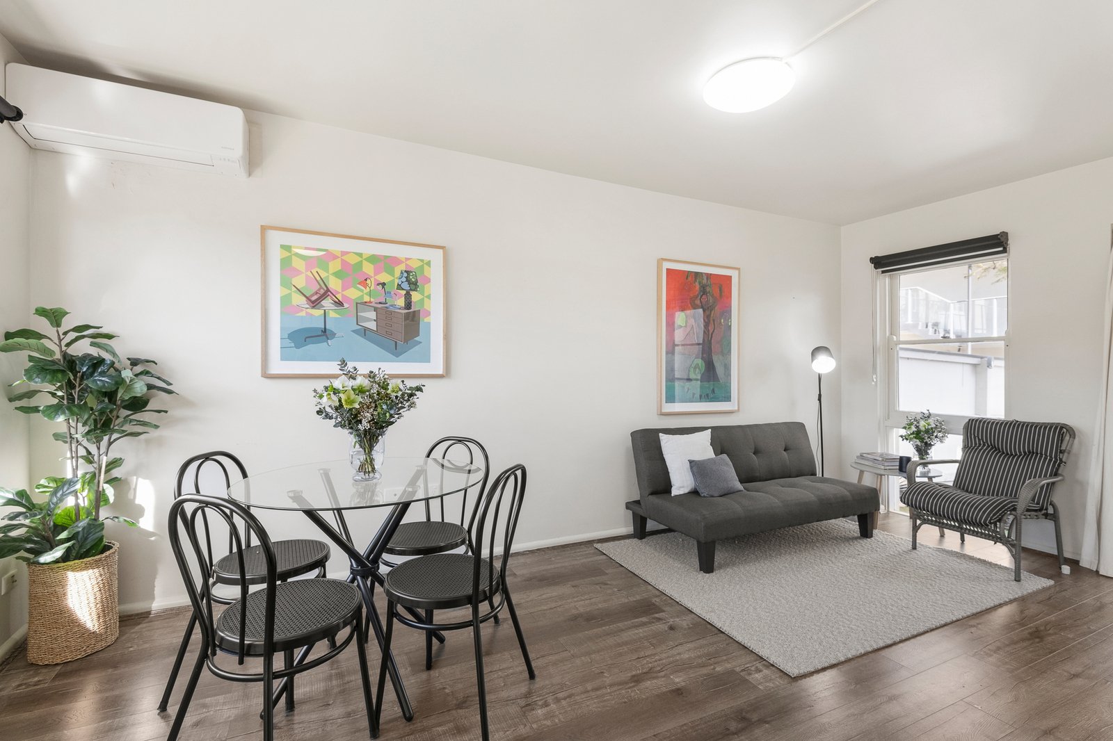 Natural light fills the interiors with an open-plan living and dining area (split system) flowing to a well-appointed kitchen boasting premium stone benchtops, electric appliances and a dishwasher. The spacious bedroom features built-in robes and direct access to a sparkling bathroom with laundry facilities for added convenience.