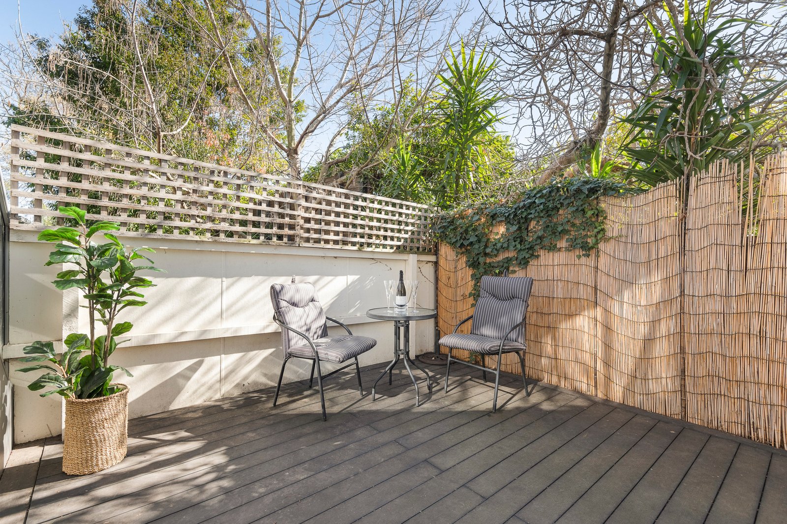 A private gated entry opens to reveal a sunlit al fresco oasis where low maintenance synthetic grass, a mature jacaranda and verdant foliage frame a spacious entertaining deck. Taking full advantage of its north-west aspect, the garden wraps around three sides of the home, offering a secluded, pet-friendly haven with ample room to stretch out and enjoy. A lockable storage room completes the outdoor amenity.