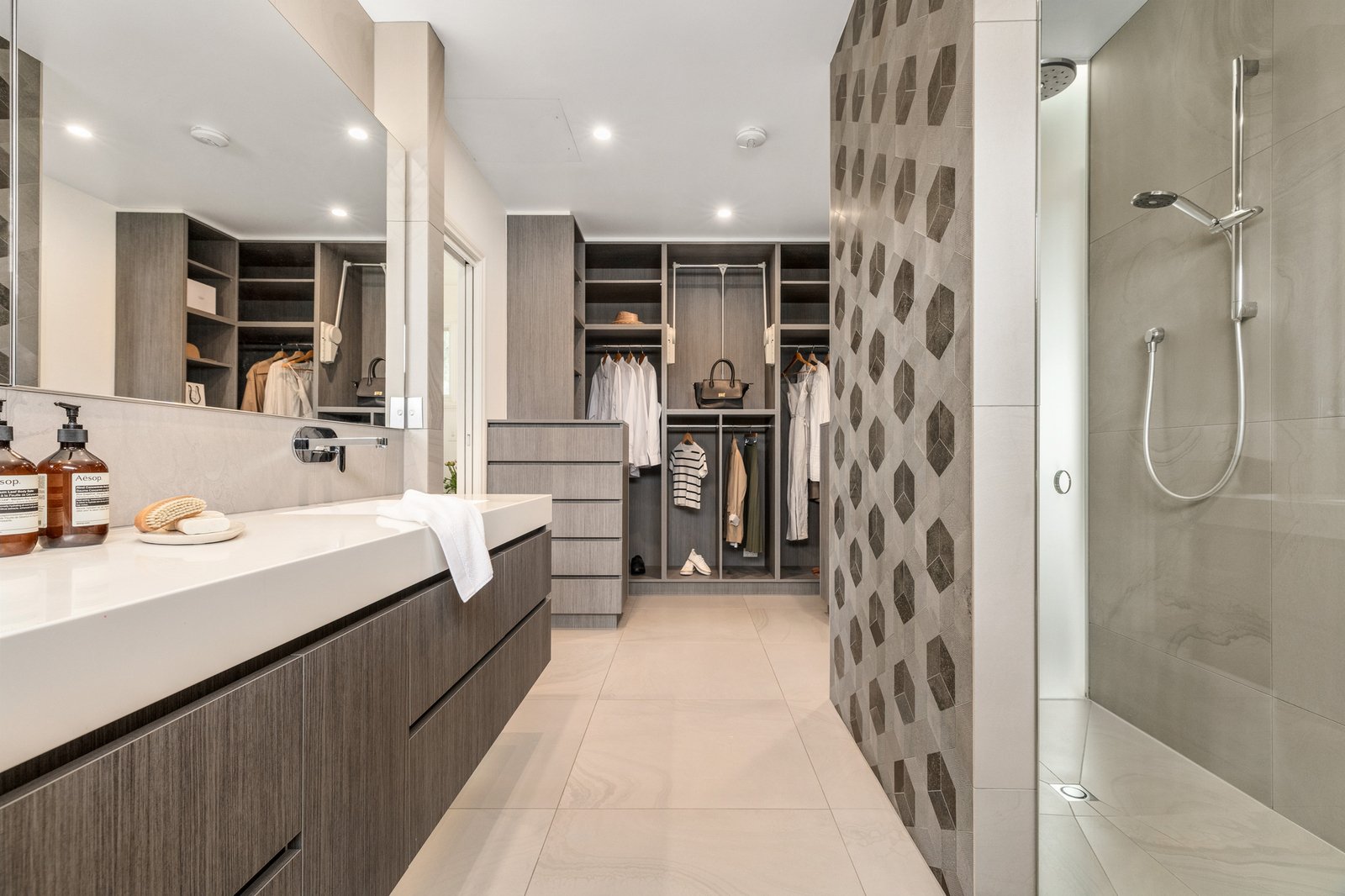 Superbly zoned with family flexibility in mind, the upper level flaunts a sound-proof rumpus or media room and study space as well as three more oversized bedrooms (built-in robes). The main bedroom is a private retreat for parents inclusive of a tree-top balcony, walk-in robe and luxury dual vanity ensuite boasting fully-automated mirrors, double shower and LED strip lighting.