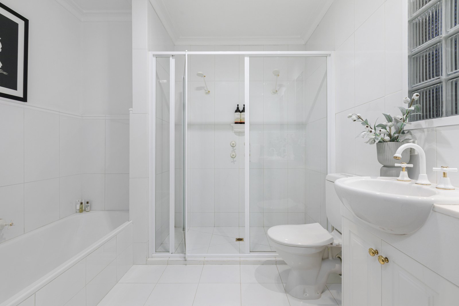Wide and welcoming, the home is introduced by a beautiful terrazzo patio that gives way to interiors that will prove hard to resist. Off the entrance hall, a living room (optional fourth bedroom) is a peaceful escape, while grand-scale entertaining can be held in the expansive sunken lounge, which boasts massive windows capturing views of the garden. Up from here is the elegant dining zone leading through to the north-facing kitchen that stretches wide to maximise the natural light and offers an inviting space for relaxed meals.