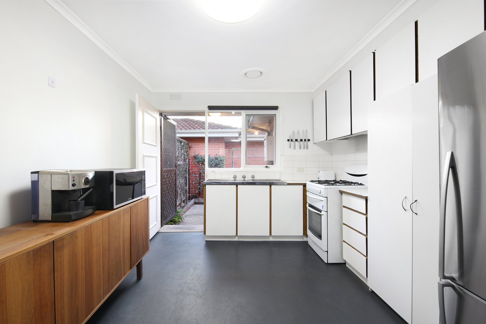 The generous living and dining room feels alive with light, spilling in through a big picture window that frames green views. Close the sliding door for peace and privacy or throw it open and let the whole interior flow. The kitchen has direct access to a rear courtyard made for barbecues or kickstarting the day with a coffee. Two bright bedrooms with built-in robes share a bathroom that’s spacious enough for both a shower-over-the-bath and laundry. Everything’s ready to enjoy, yet a makeover could take it into another league and reward your creativity.