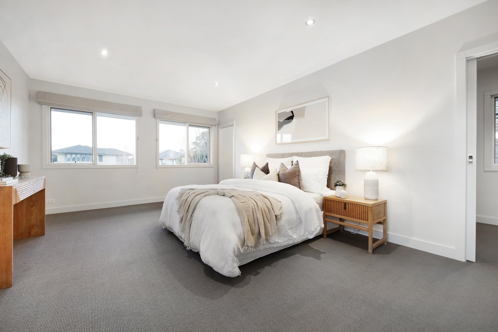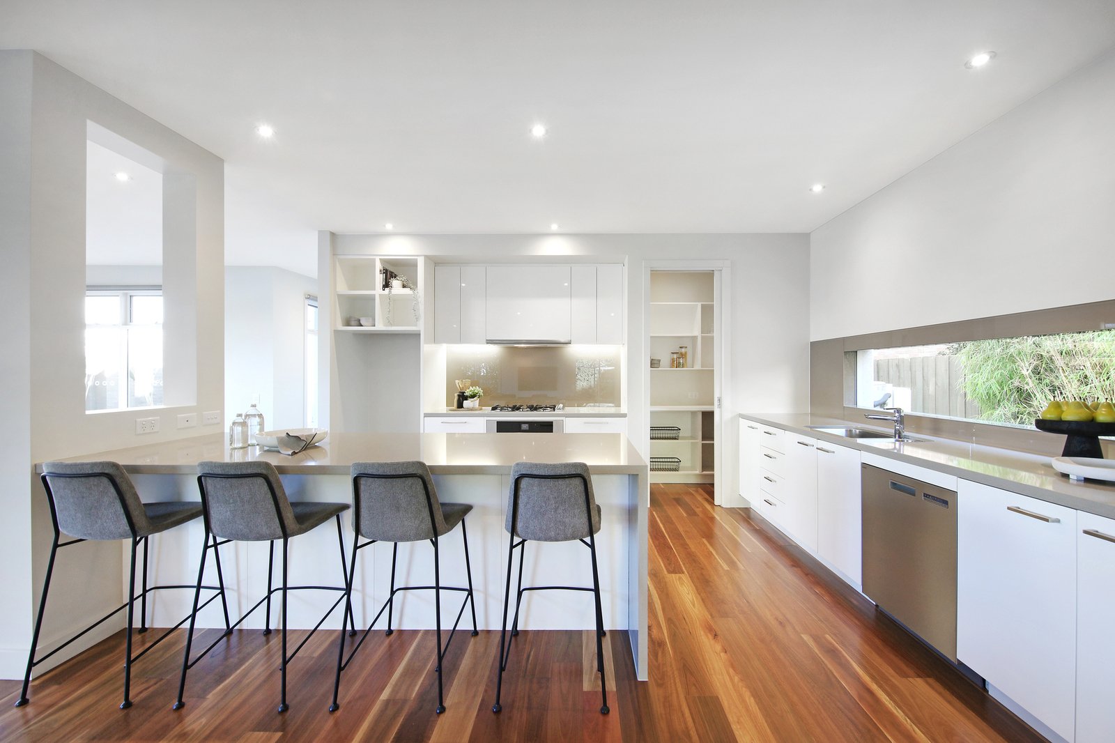 Appointed with signature dedication to quality with a prestige Ilve and Asko appliance kitchen, an extra-large laundry and a very discreet ground floor powder-room, the home’s interiors are curated in timeless style with authentic Australian Spotted Gum hardwood floors, hardwearing loop-pile carpets and sleek stone benchtops. Optioned up with an impressive gas log-fireplace in addition to ducted heating and cooling, there's excellent storage including built-in and walk-in robes, streamlined blinds including day-night dual options.