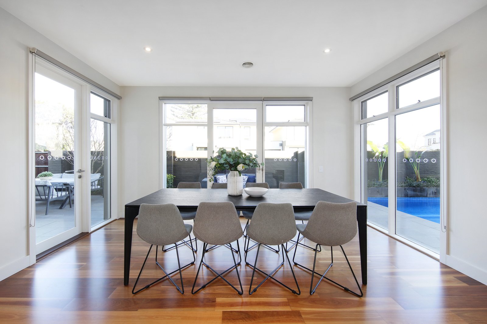 Corner-sited, pool-focused and sun-soaked, this is an InFormed choice in state-of-the-art family living. A landmark home on a sun-catching approx 581sqm north-westerly corner block, this freestanding four bedroom plus home-office, 2.5 bathroom home maximises light and lifestyle with benchmark family design from iconic Bayside builders, InForm.