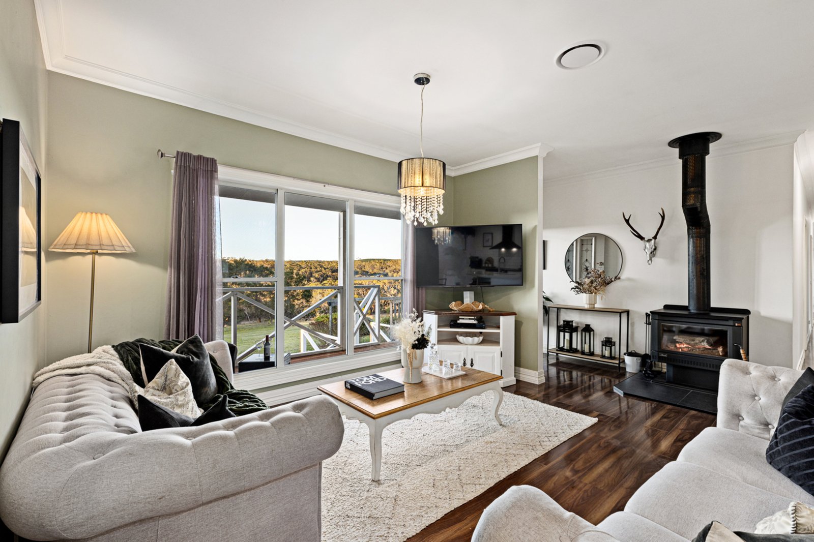 The rolling land, complete with a spring fed dam, is perfectly suited for animals, while practical features such as secure triple garage access to the home, 62,000L of tank water, septic system, solar powered with battery back up so off the grid system is the key, 9 foot ceilings, dedicated garden water tanks, and established trees add to the appeal.