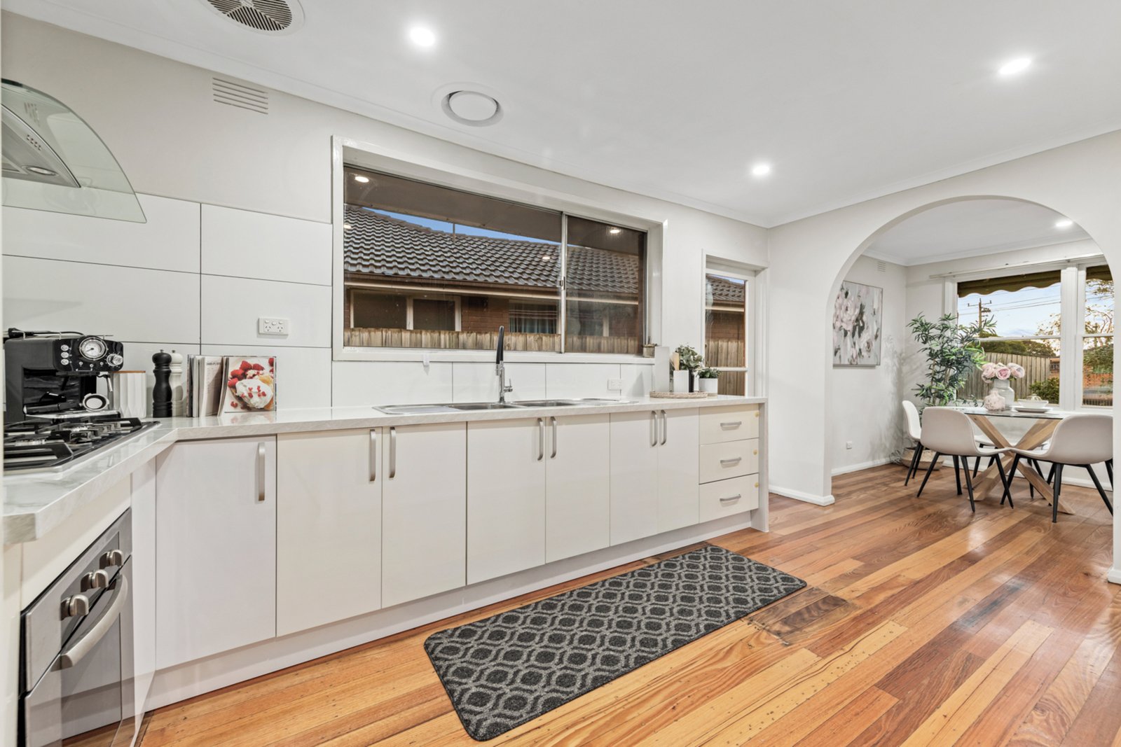 • Timeless kitchen with ample storage, bench space, and large picture window