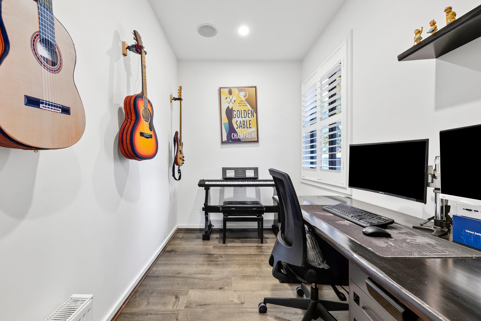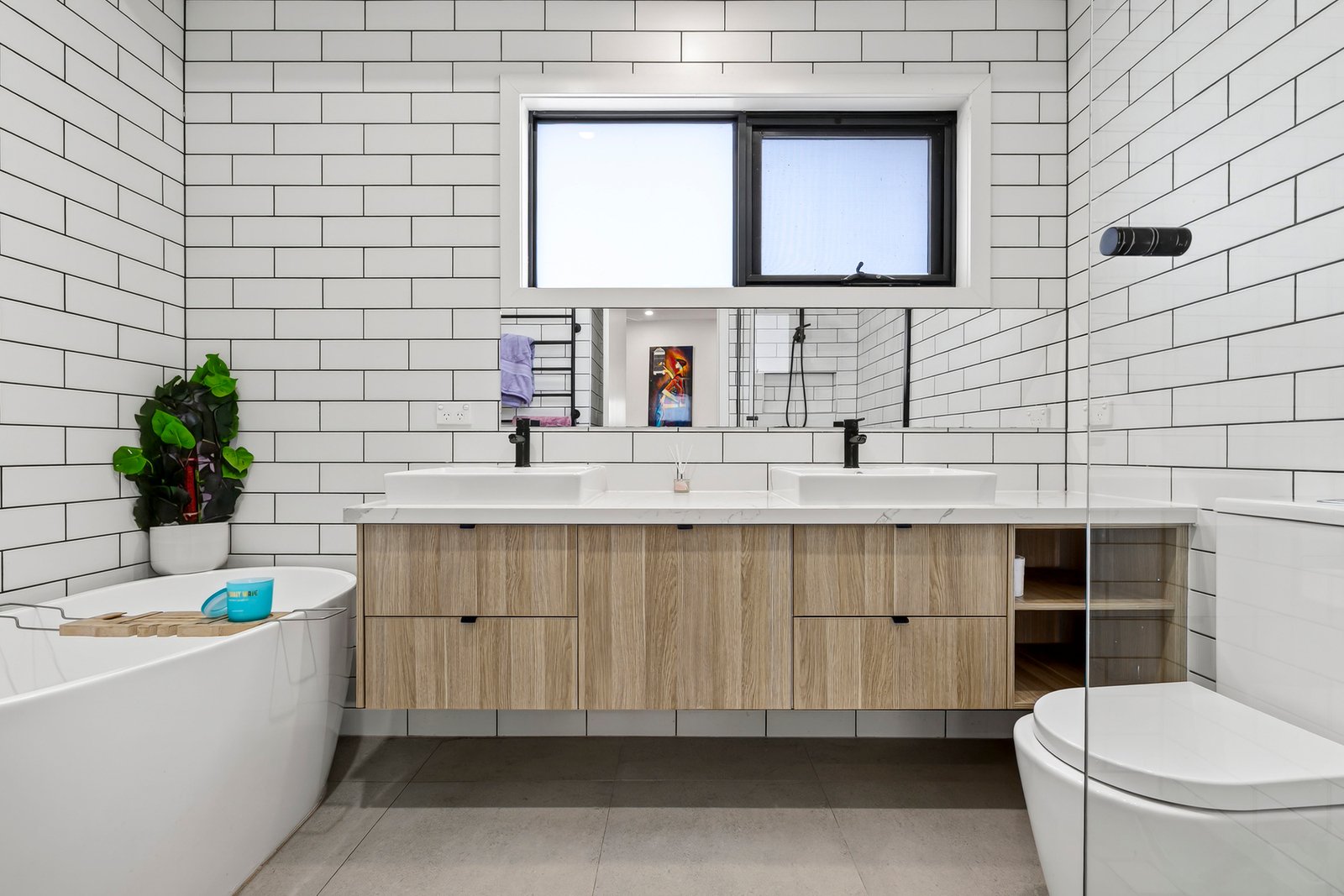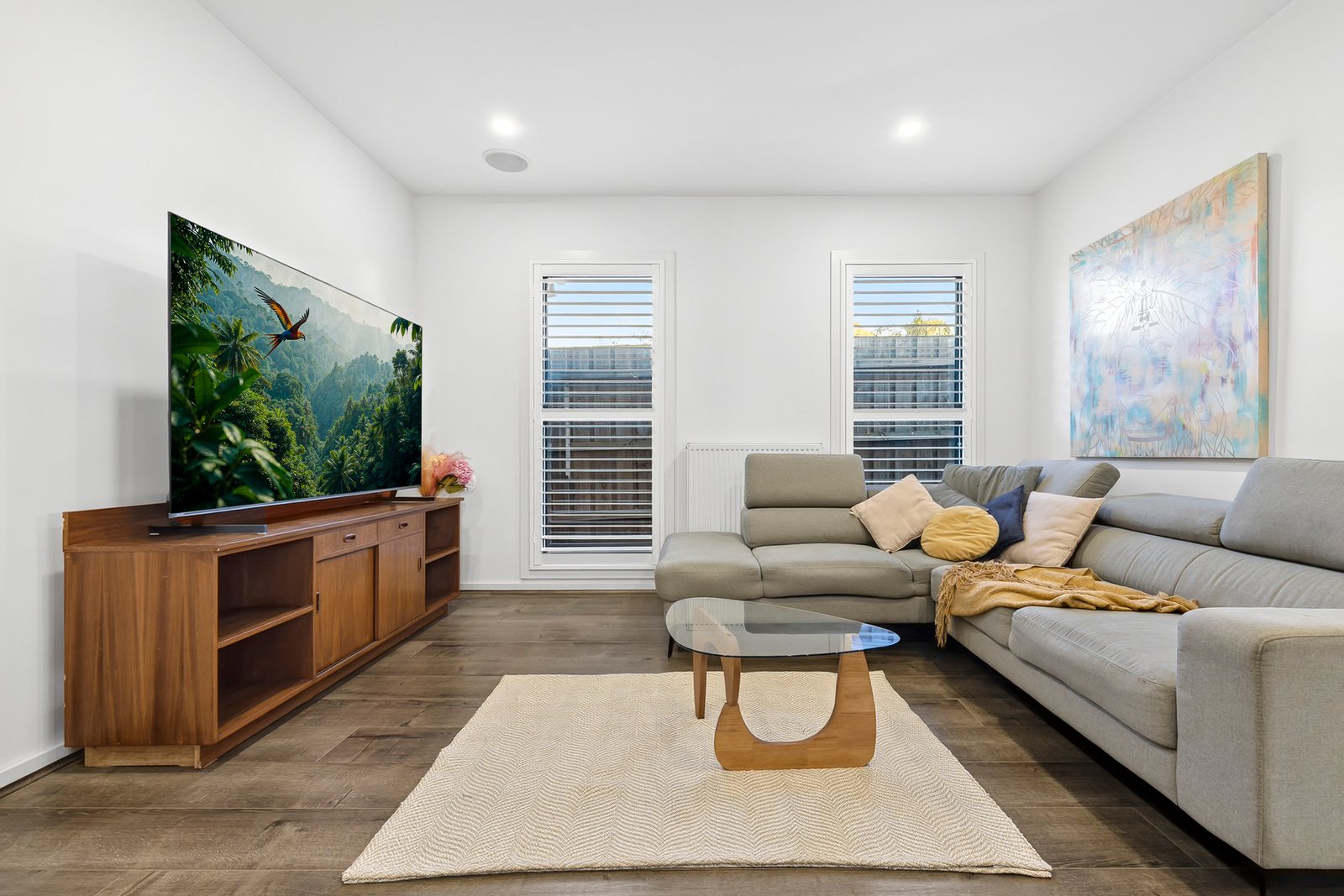 The master suite is pampered by a walk-in robe and a monochrome ensuite with full height tiles. While three further bedrooms are served by a matching family bathroom with tub. Aiming to please, this home also features a double garage with internal access and rear roller door, a first floor fitted office nook, hydronic heating, ducted cooling, indoor & outdoor surround sound, and aluminium windows including a servery and a stacker door to family room.