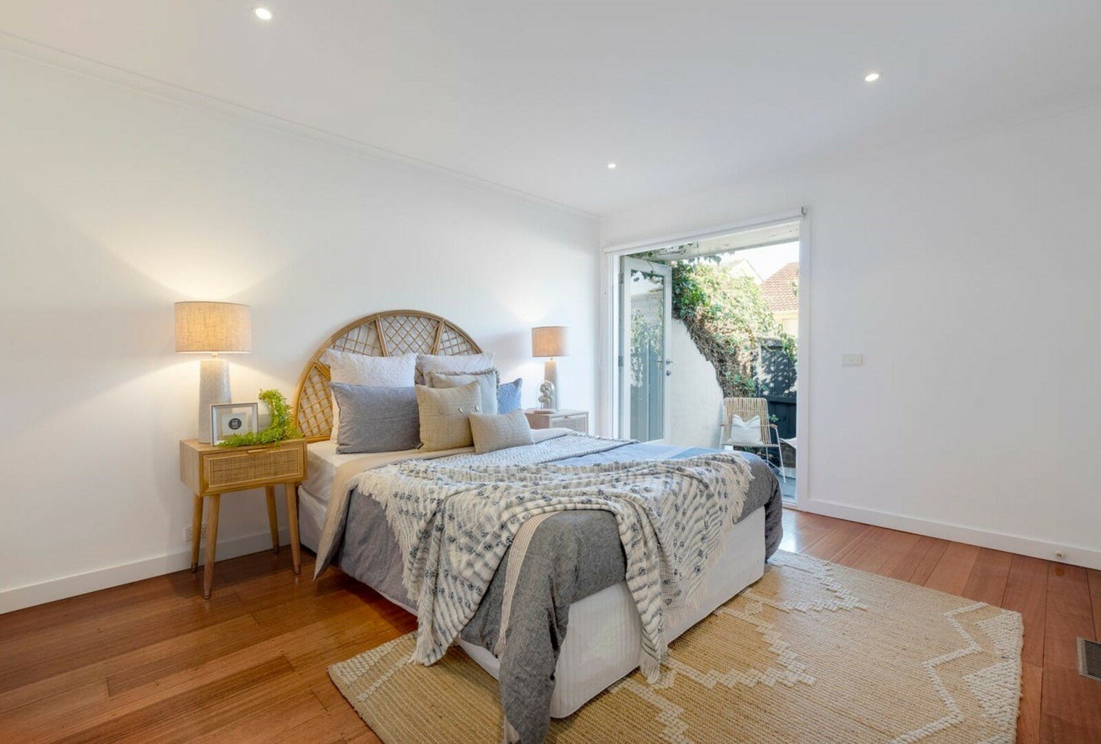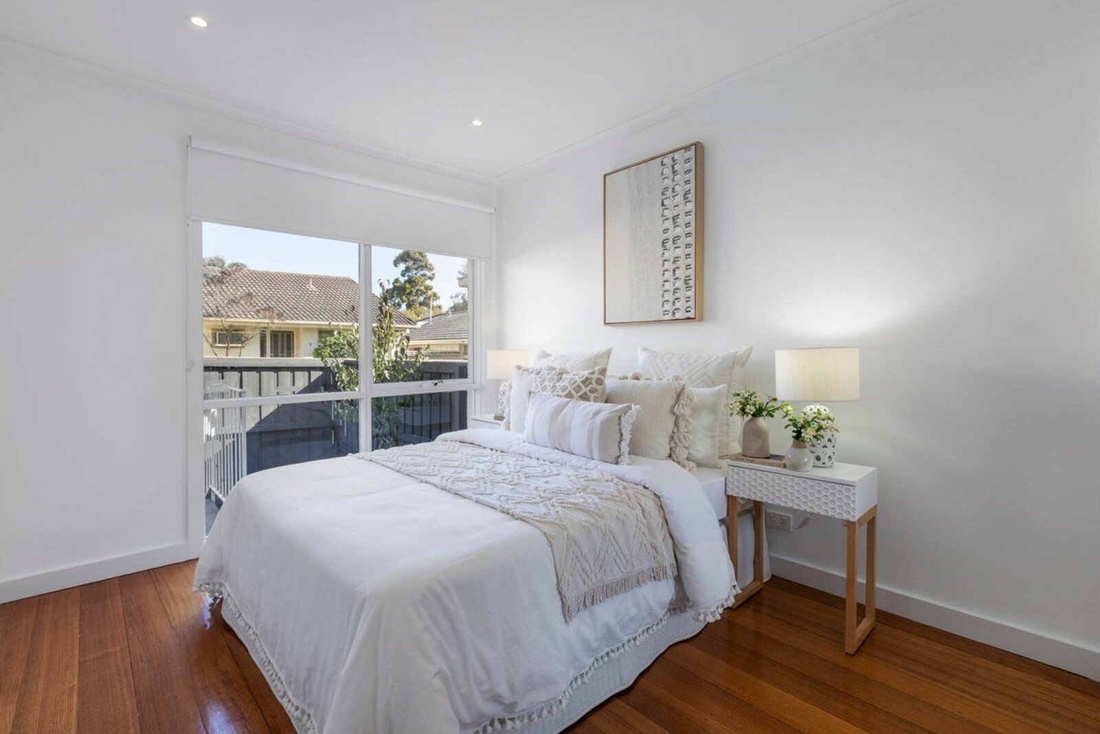 Two sizable bedrooms (built-in robes) overlook the sunny rear courtyard, the main bedroom also features a two-way en suite bathroom and outdoor access. A separate home office or generous studio sets this one apart with a flexible area to use as desired. Also a large laundry, separate WC, ducted heating, split system cooling, roof attic storage and a single garage plus an additional parking spot. Easy to maintain landscaped gardens.