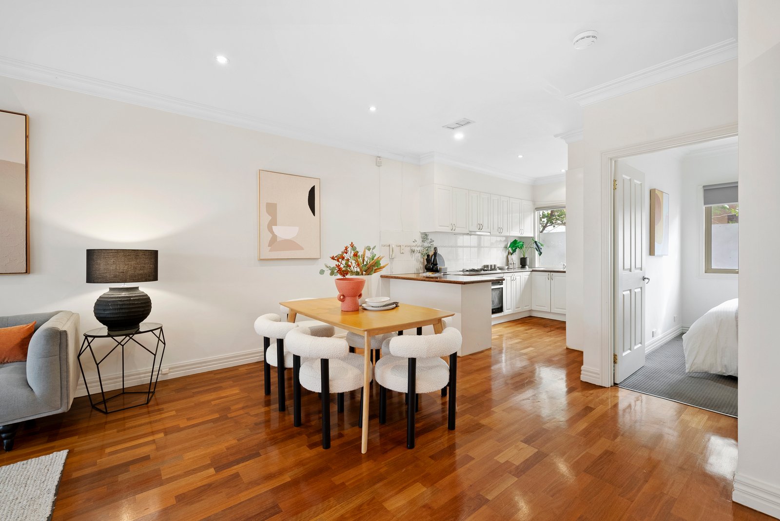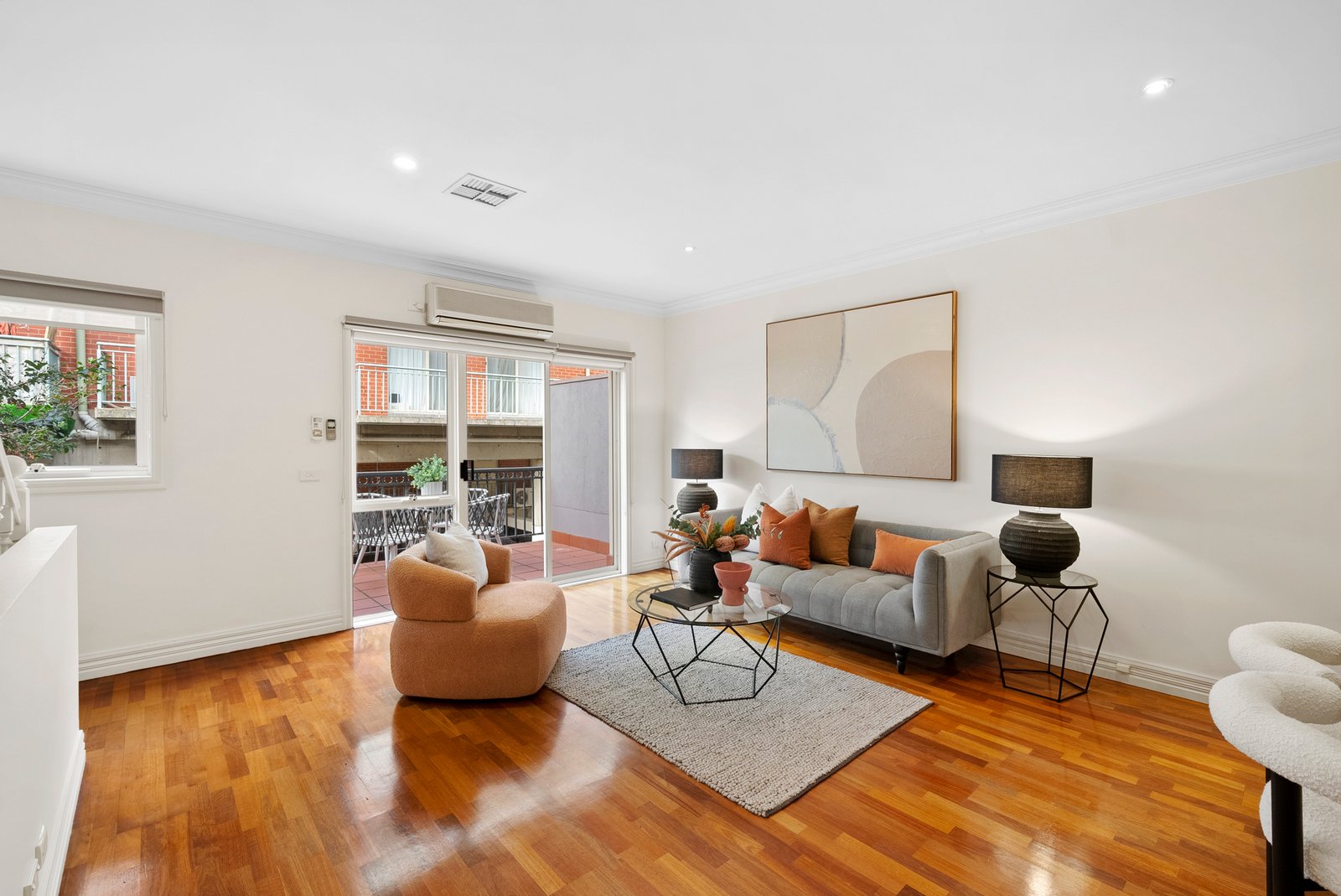 Perfect for those who value both comfort and convenience, this home is a sanctuary in the city. The first floor is devoted to effortless entertaining, where open plan living and dining spill onto a sun-drenched balcony, the perfect setting for morning coffee or evening gatherings. At its heart, a sparkling granite kitchen with breakfast bar invites conversation and connection. A versatile bedroom on this level, paired with an ensuite-style powder room, makes an ideal guest retreat or home office. Upstairs, two robed bedrooms include a main with walk-in robe, sharing a central bathroom with both shower and bath. Year-round comfort is assured with ducted heating and split system cooling, creating a retreat from the buzz of Chapel Street just moments away.