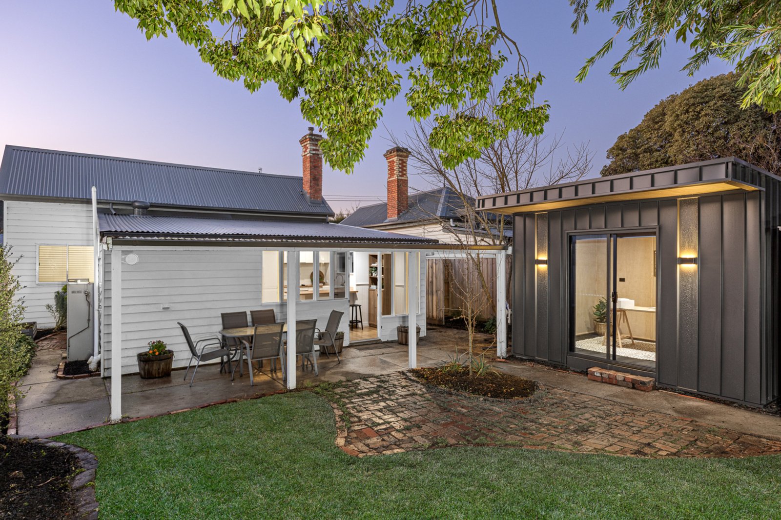 Inside, the home features three bedrooms, two with built in robes, alongside a private living space complete with a gas fireplace and split system for year-round comfort. The stylish bathroom includes a larger shower, vanity and a clawfoot bath, while the European style laundry adds practicality to the layout. A light filled open kitchen and meals area provides the heart of the home, fitted with an electric cooktop, double sink and ample storage. Outdoors, enjoy a low maintenance alfresco and backyard, complemented by a single lock up garage with rear lane access, garden shed, and an impressive studio space equipped with power, lighting and a split system, perfect for a home office, hobby room or retreat.