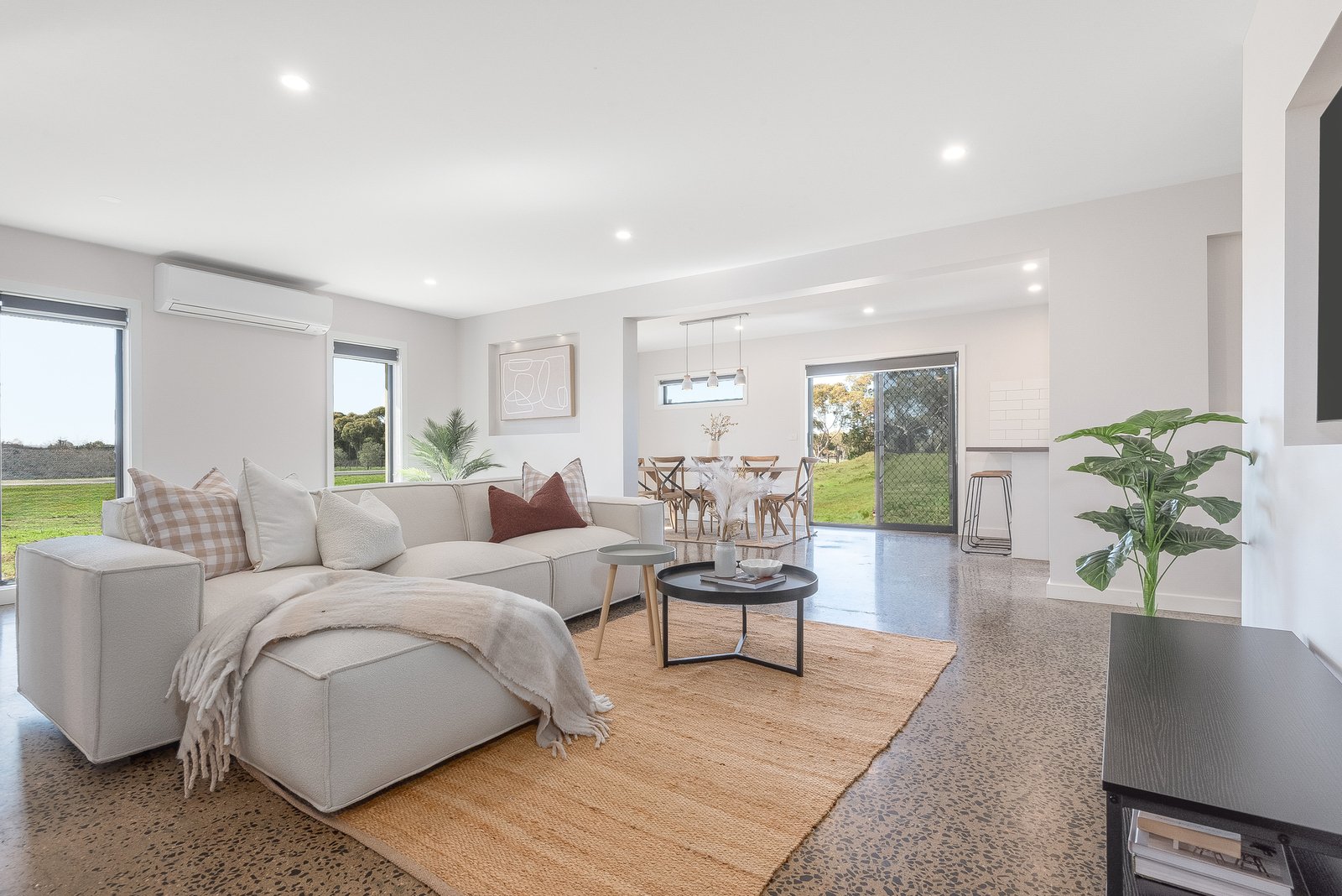 Set in the tranquil surrounds of Lovely Banks, occupying 5.2 acres (approx.) this beautiful property offers modern living in peaceful and picturesque surrounds. Designed for family functionality, delivered in quality and style throughout, enjoy the ultimate acreage lifestyle, along with all the benefits of central living. Just 5 minutes (approx.) from Bellpost Shopping Centre, surrounded by excellent schools including Kardinia International, Geelong Baptist and Covenant Colleges, 15 minutes (approx.) from the CBD, with easy access to Melbourne, enjoy country-style living with urban convenience.