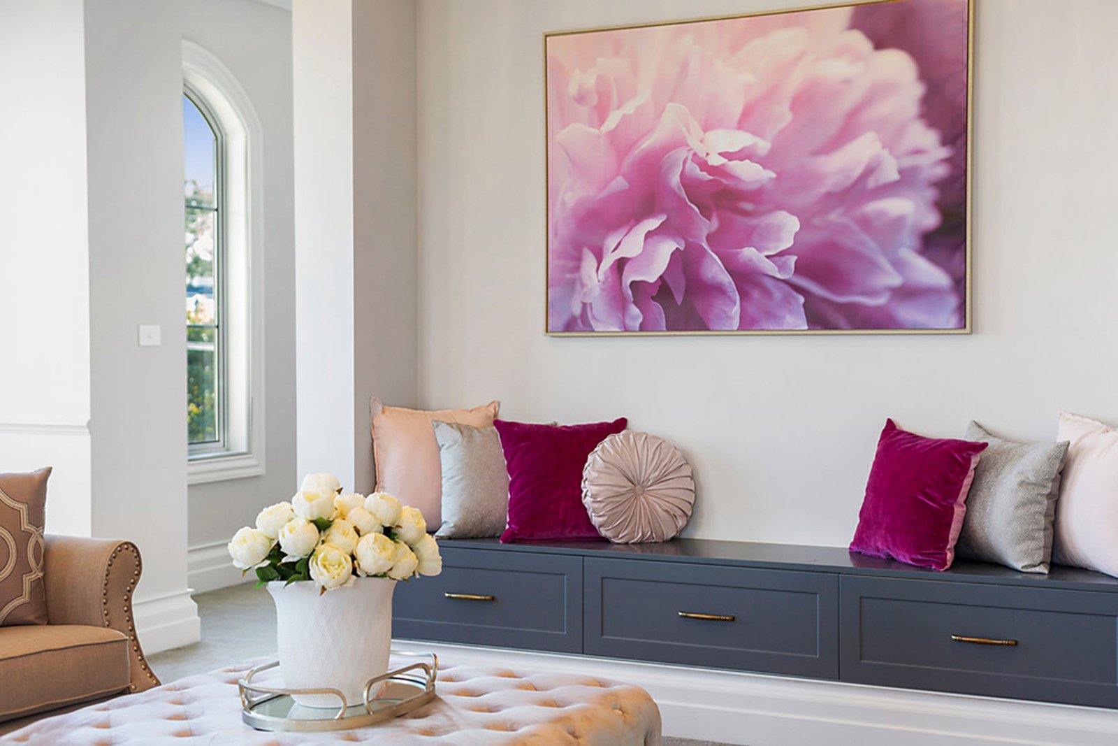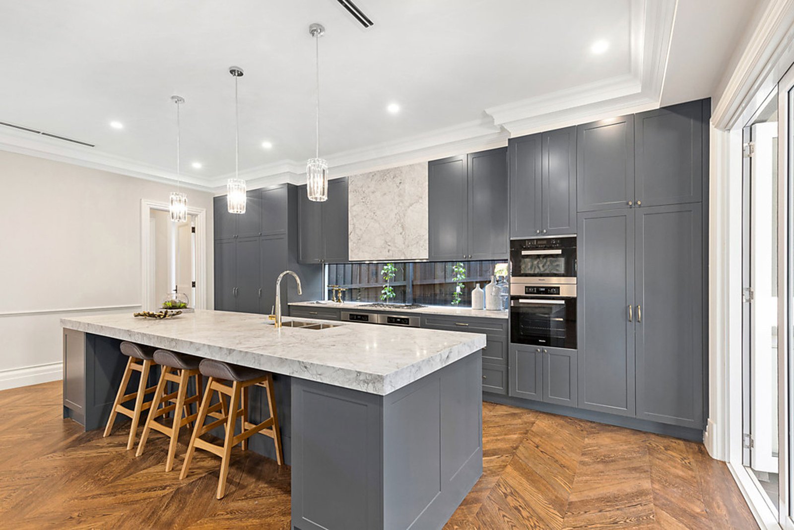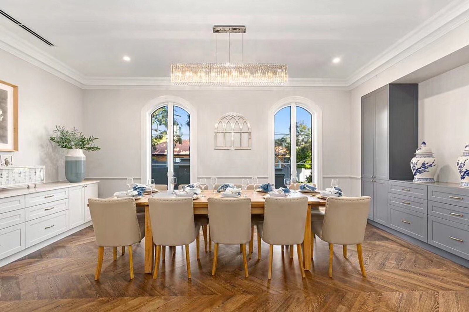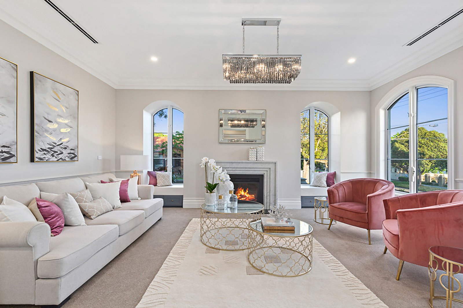 Upstairs, the sense of indulgence continues with a luxurious master suite that boasts a dressing room, spa-inspired ensuite and a private balcony overlooking the streetscape. Three additional bedrooms, each with their own ensuite, ensure comfort and privacy for the whole family, while a central retreat adds flexibility as a quiet escape or an additional living area. Every element has been considered, from bespoke cabinetry to the abundance of natural light filtering through arched windows, creating an atmosphere of understated sophistication.